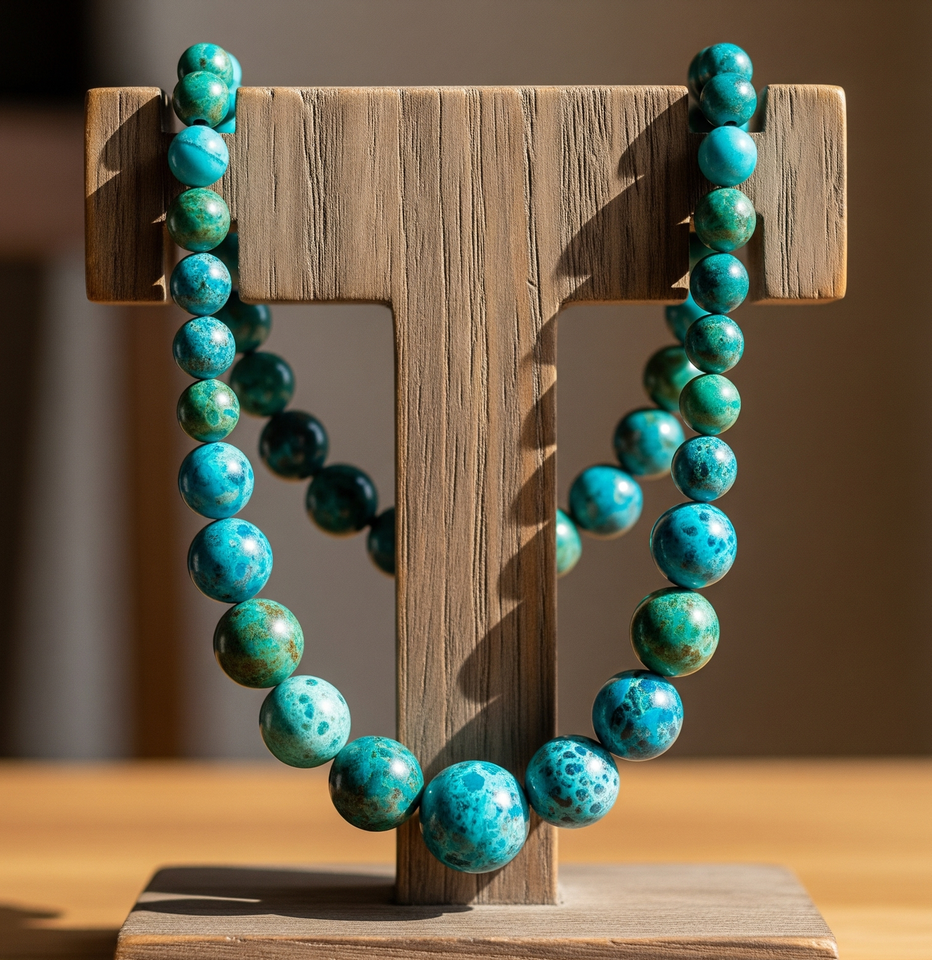 Collar de cuentas de piedra crisocola Natural curativa con diseño anudado a mano de 925 de plata de 18 pulgadas para mujer