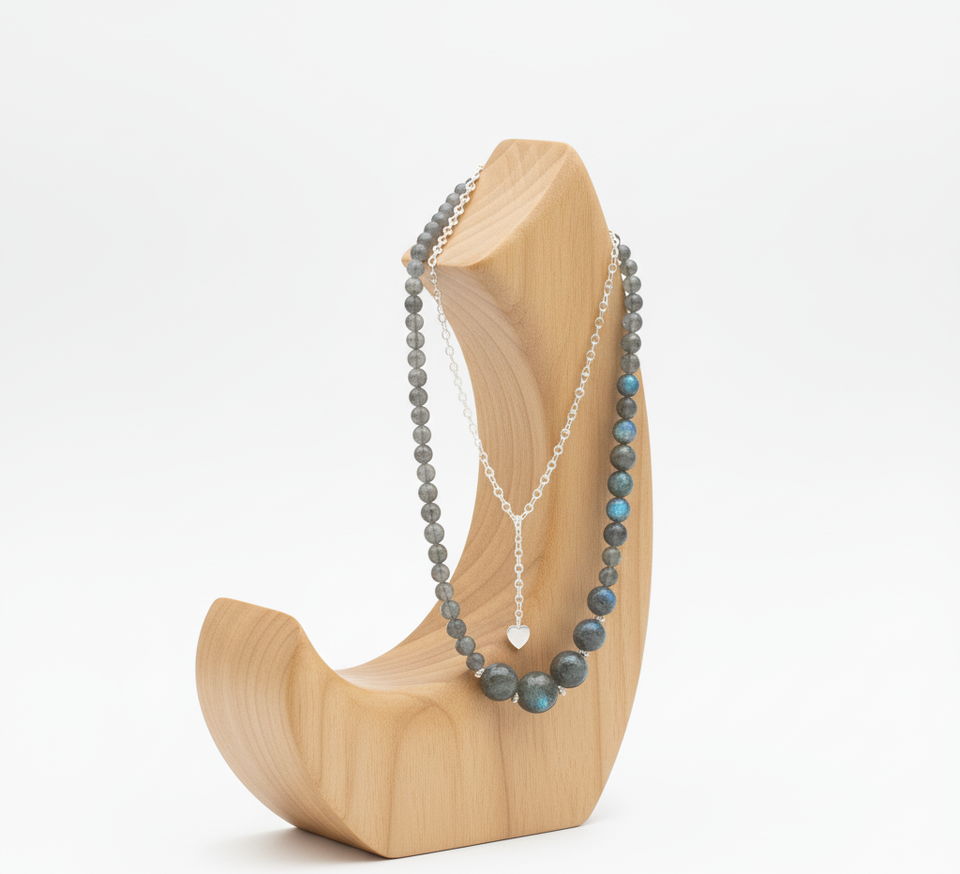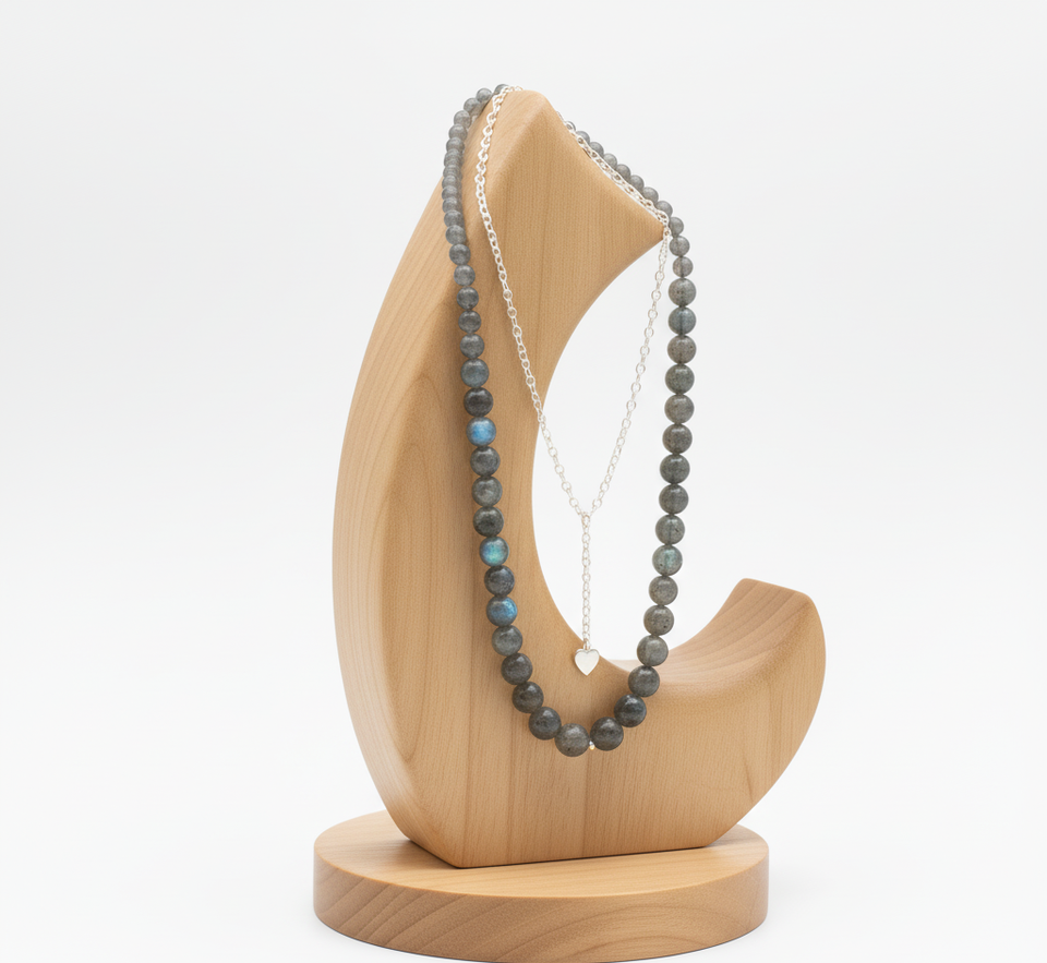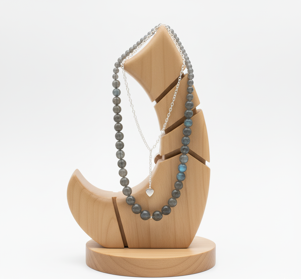 Collar de moda de plata 925 de 18 pulgadas para mujer, cierre anudado a mano, cuentas de piedra de labradorita, diseño geométrico, curación Natural