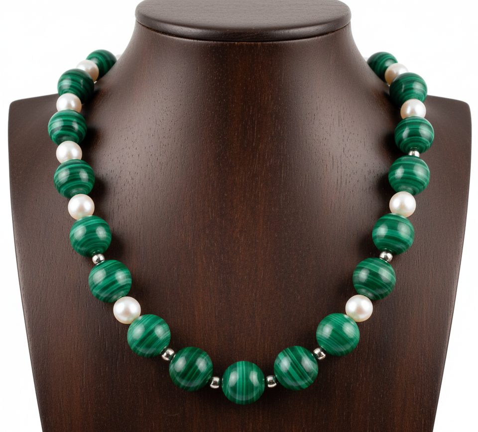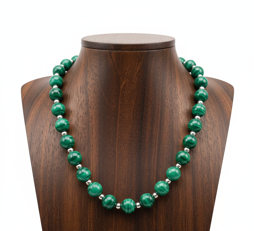 Collar de Cuentas de Malaquita Tibetana Plateada de 18 Pulgadas para Mujer, Diseño Geométrico Anudado a Mano, Accesorio de Moda Natural de Tendencia, Regalo