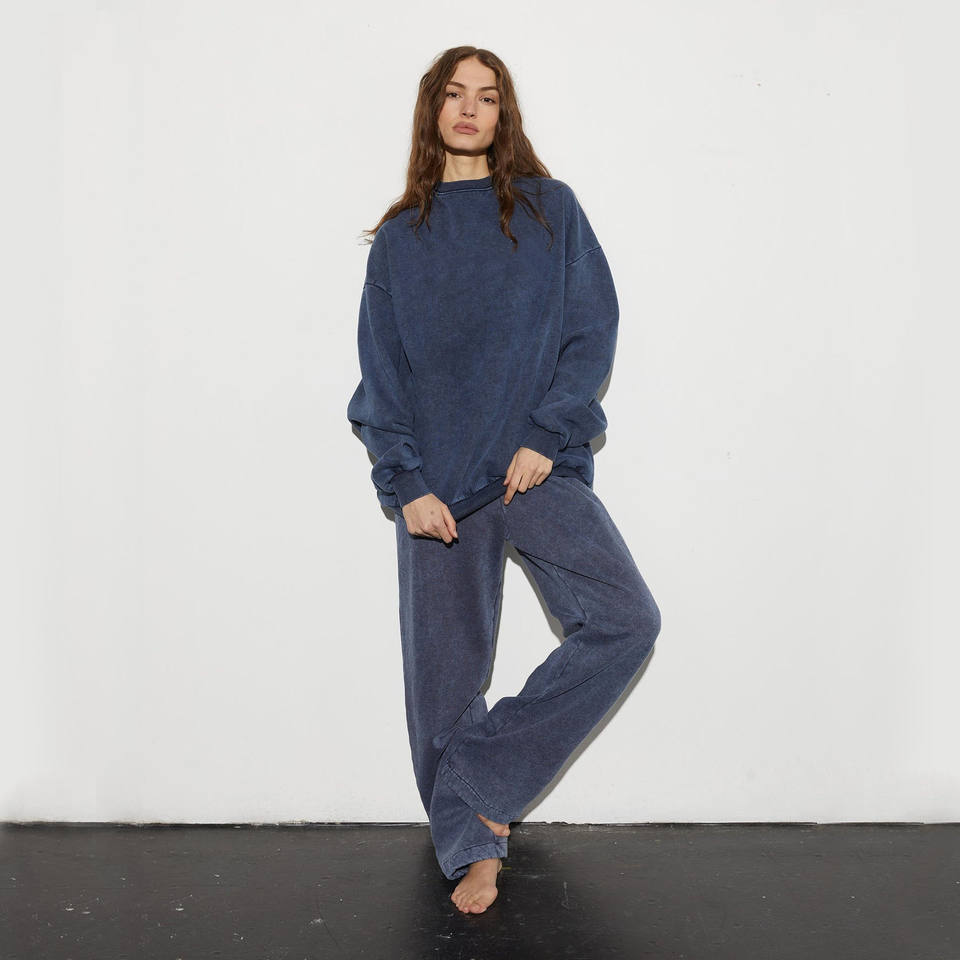 Conjunto de jogging de 2 piezas para mujer, chándal liso lavado con mallas para invierno, conjunto de pantalones de dos piezas