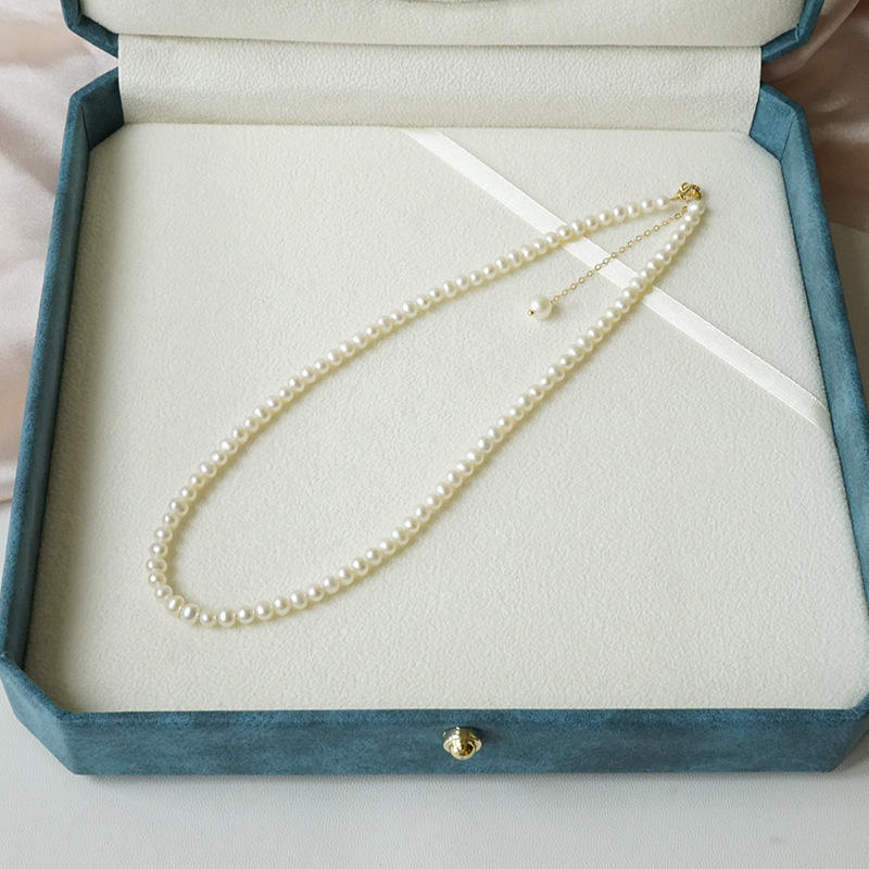 Collar de Perlas de Agua Dulce Naturales de 3-5 mm para Mujer con Fuerte Regulador de Luz, Cadena para Clavícula Casi Circular, Nicho de Mercado