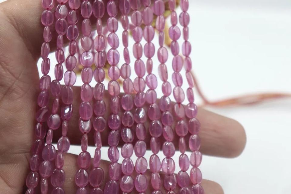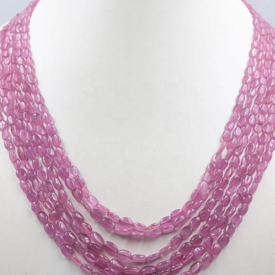 Collar de Cuentas Ovaladas Lisas de Rubí Natural de 6 Hilos para Mujer, 5*7 mm, 16-20 Pulgadas con Cuentas de Piedra