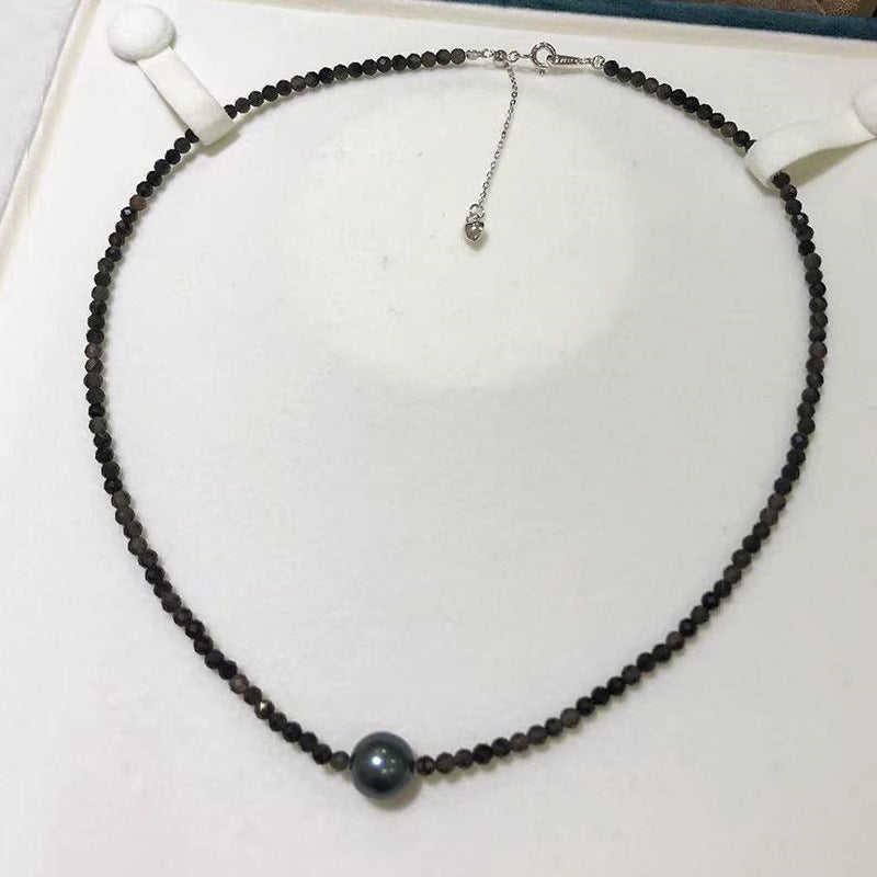 Collar de Plata 925 para Mujer con Espinela Negra y Perla, Joyería de Moda con Cuentas