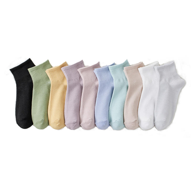 Women's Ankle Socks Solid Color Breathable Sweat Absorbent Casual Cotton Socks 10 Pairs