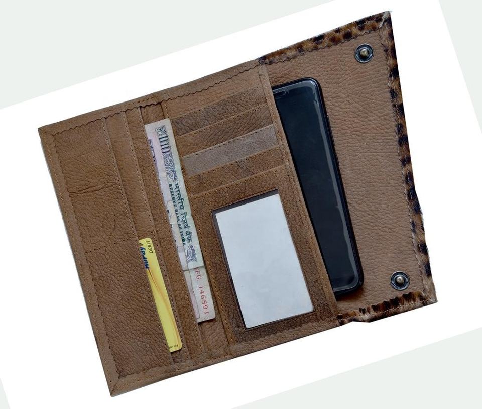 Cartera de mano de cuero genuino tallada antirrobo para mujer, cierre de cremallera, solapa con estampado Animal, bolso del fabricante, exportado a la India