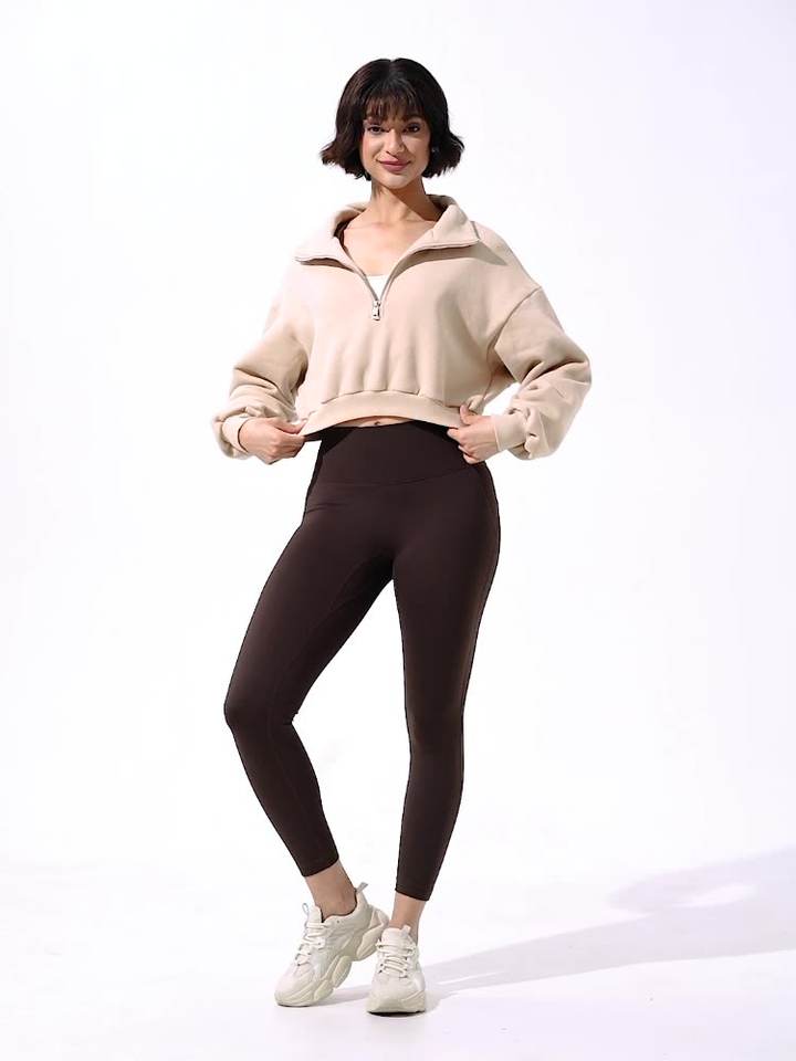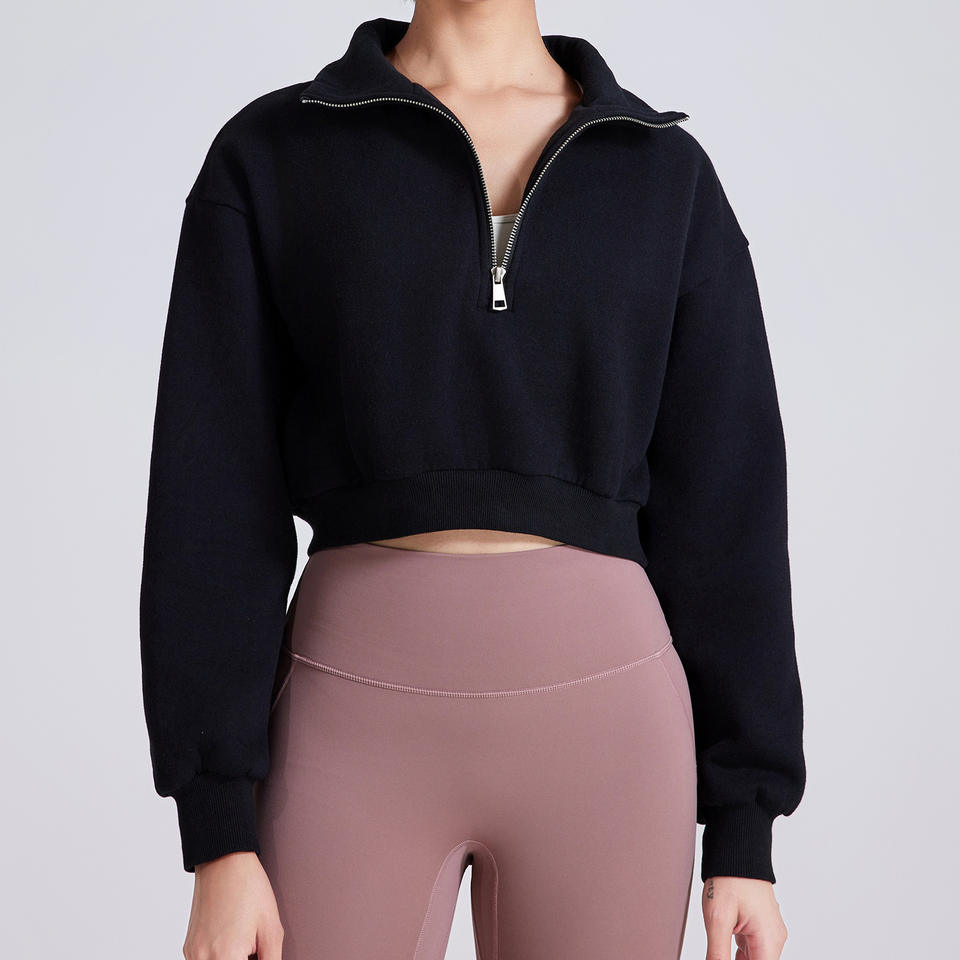 Sudadera con Media Cremallera para Mujer, Otoño Invierno, Mangas Largas, Cuello Alto de Terciopelo, Holgada, Informal, Deportiva, para Yoga