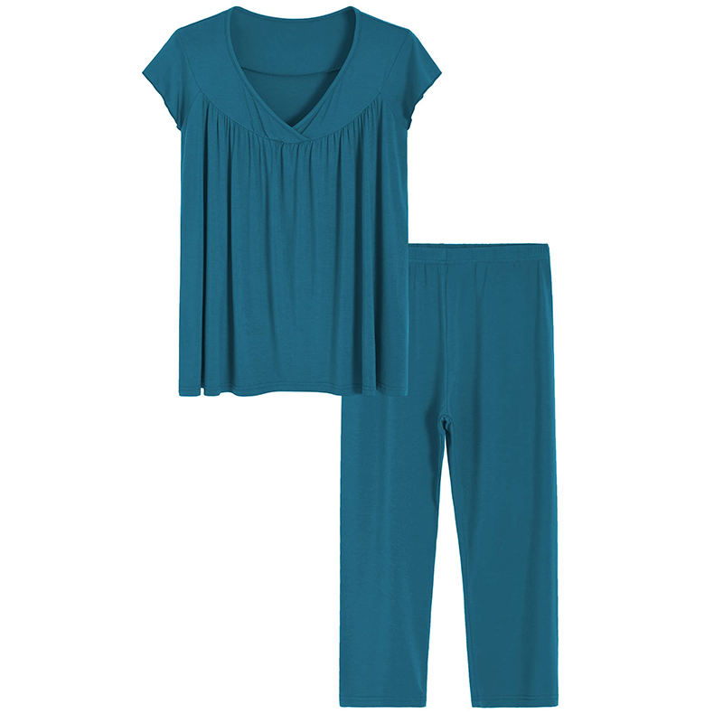 Estilo:Conjunto de pijama de viscosa de bambú para mujer, top con cuello en V y pantalones de estar por casa
