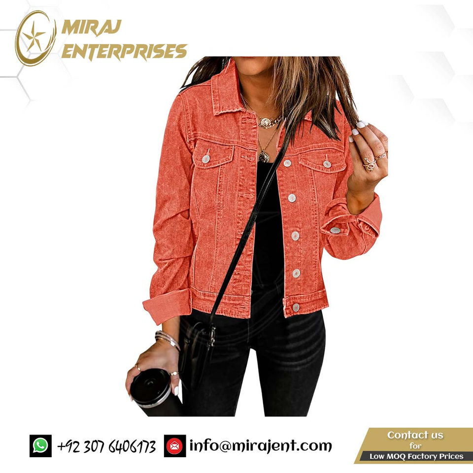 Chaqueta universitaria elástica de manga larga transpirable con botones básicos para mujer, chaqueta vaquera de camionero personalizada