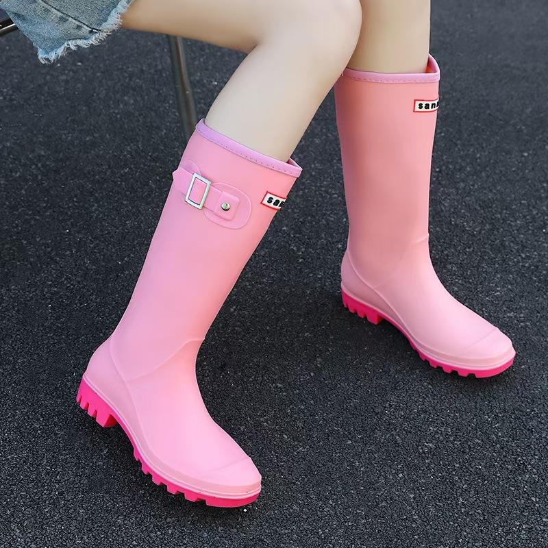 Hermosas Botas de lluvia altas para mujer PVC Nice Lady Transparente antideslizante Impermeable Moda Nuevo diseño Zapatos de lluvia