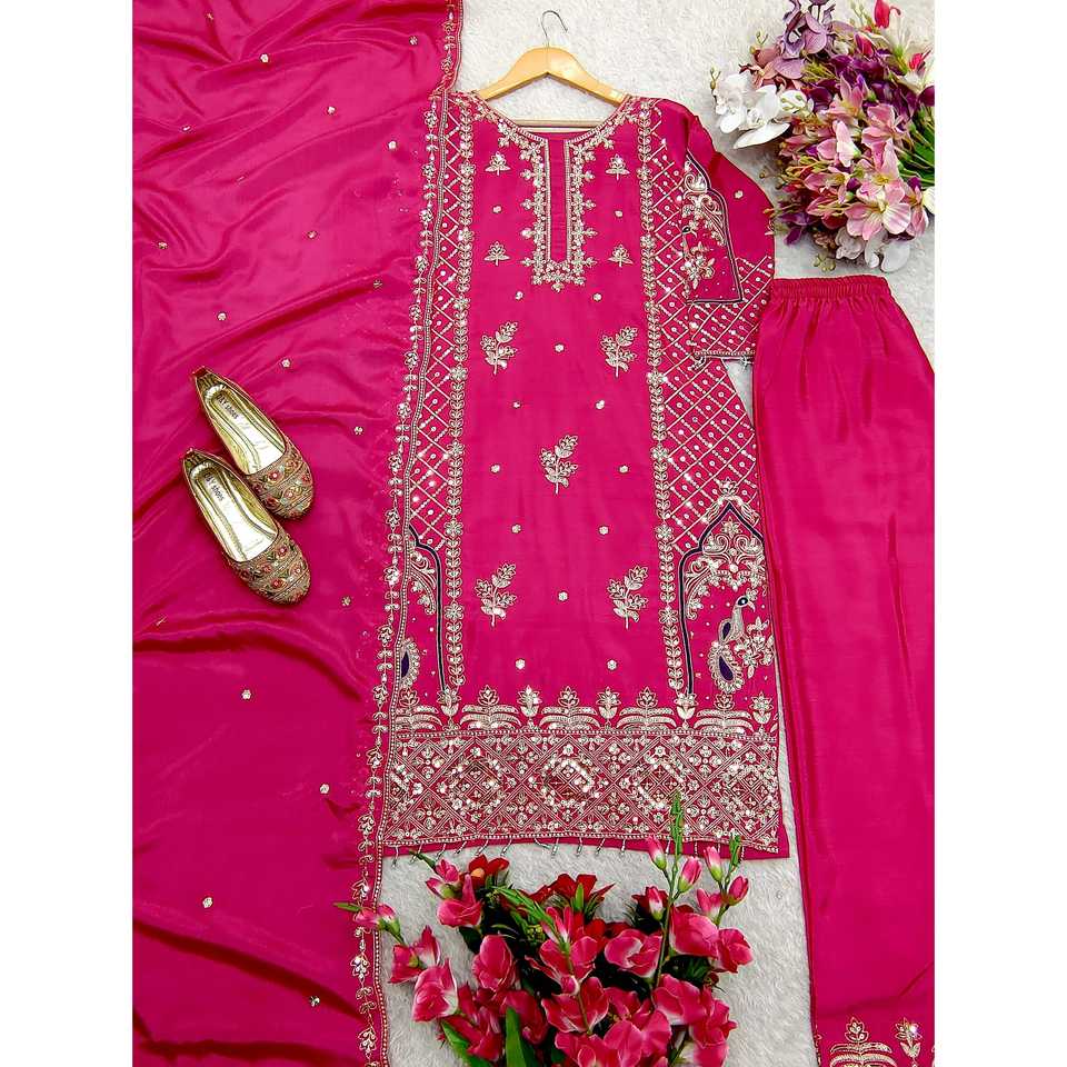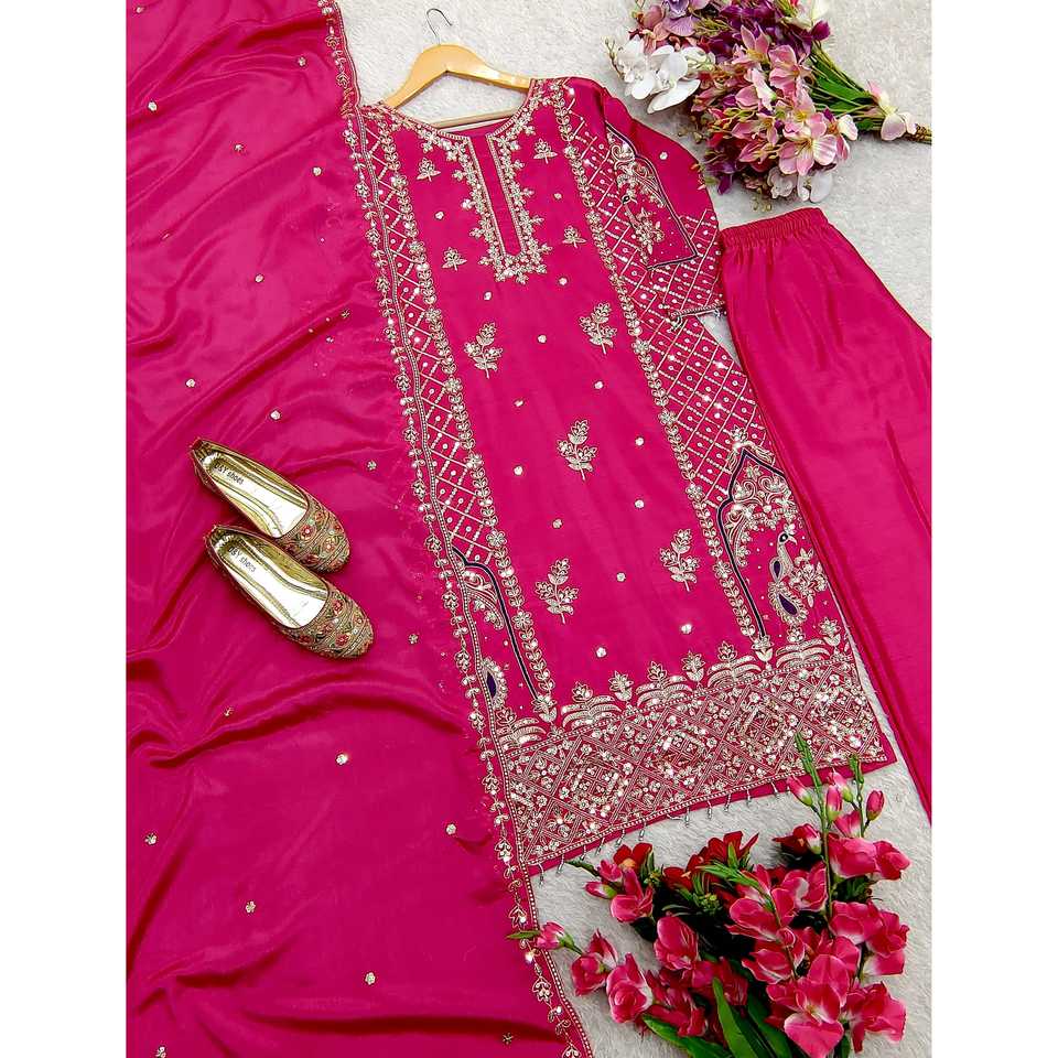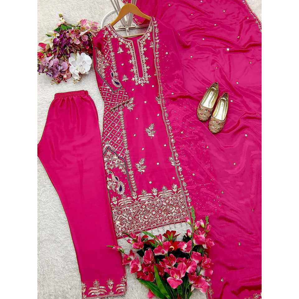 Hermoso conjunto de traje de fiesta para mujer con pantalón superior bordado Dupatta con trabajo de secuencia