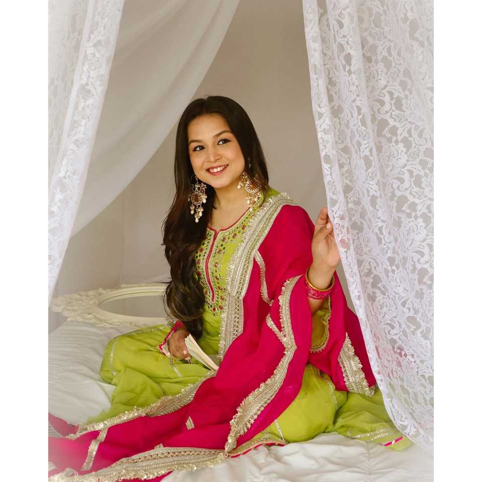 Hermosa ropa de fiesta para mujer Top Plazzo Dupatta Set con bordado de trabajo
