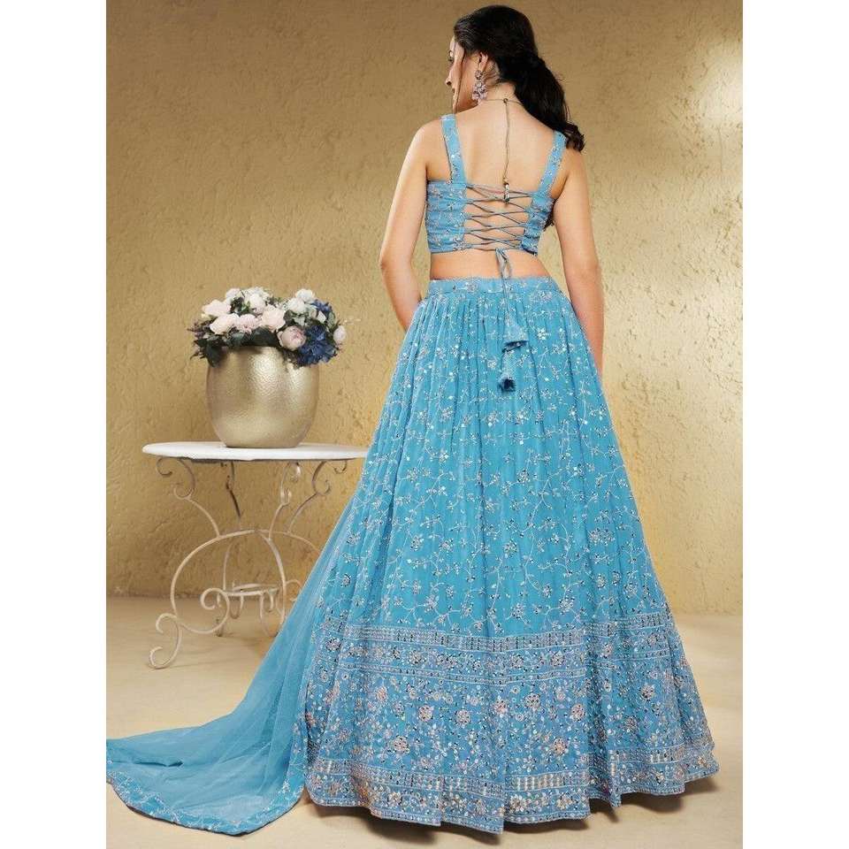 Hermoso conjunto de lentejuelas azul cielo para mujer Georgette Lehenga Choli con Dupatta