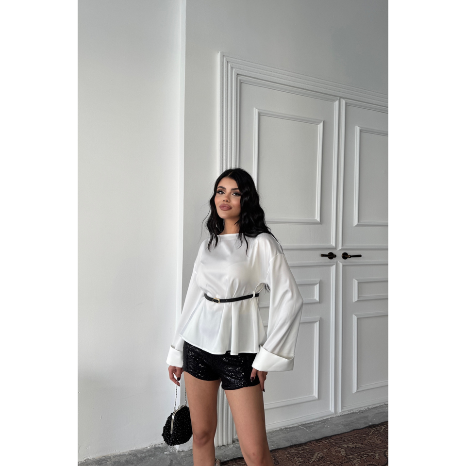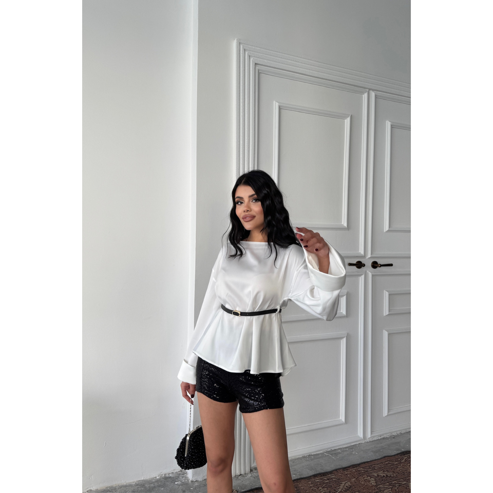 Camisa de gasa beige con detalle de lentejuelas