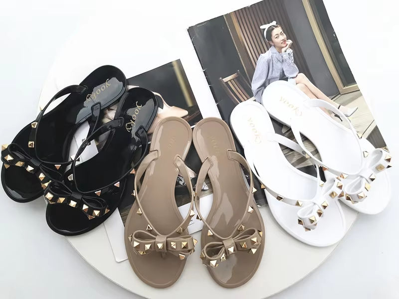 Chanclas de PVC duraderas con remaches para mujer, talla grande, impermeables, para playa, antideslizantes, calzado de invierno, venta al por mayor