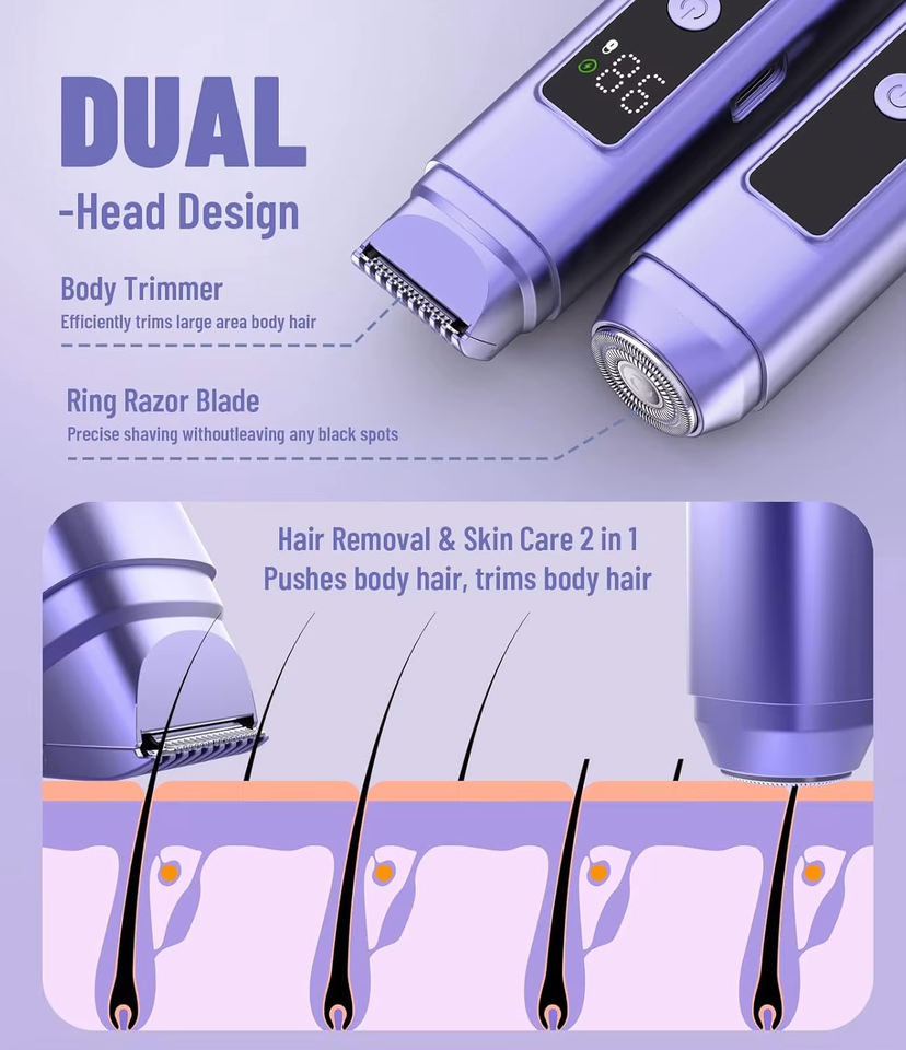 Depiladora Eléctrica Recargable para Mujer, Resistente al Agua IPX7, con Pantalla LED, Modelo H2, para Vello Púbico, Facial y Corporal