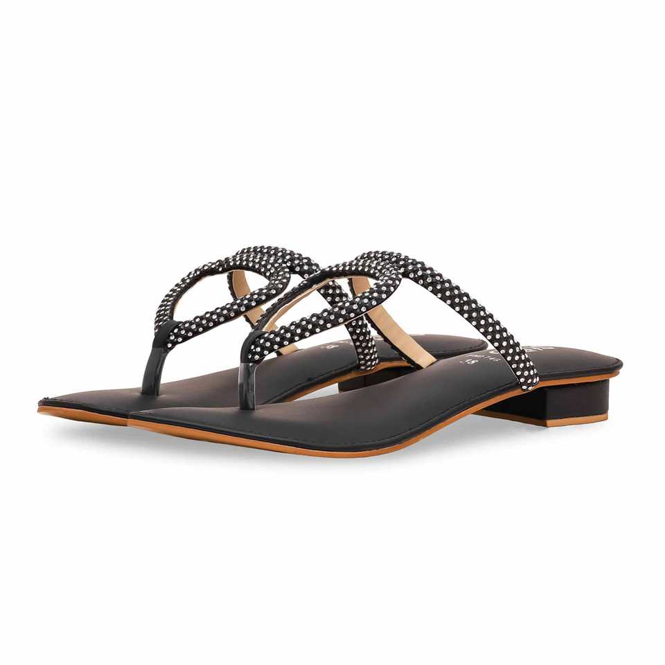 Mujer Negro Fancy Chappal FN0746 Elegante Cómoda Herramienta de torneado