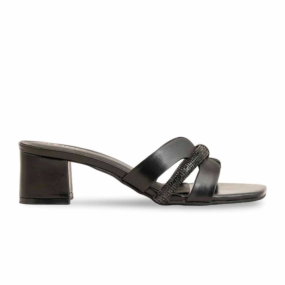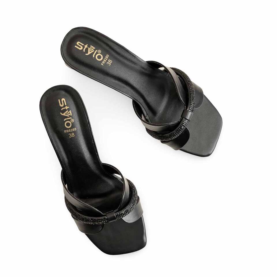 Sandalias negras de tacón formal para mujer, zapatillas FR8280