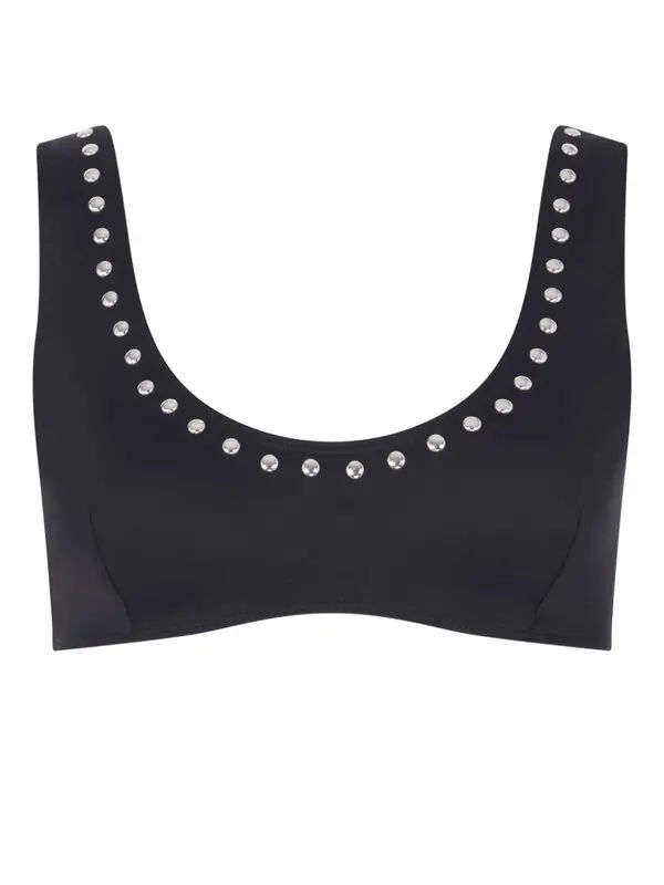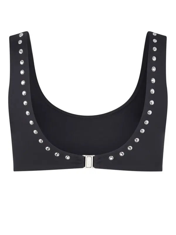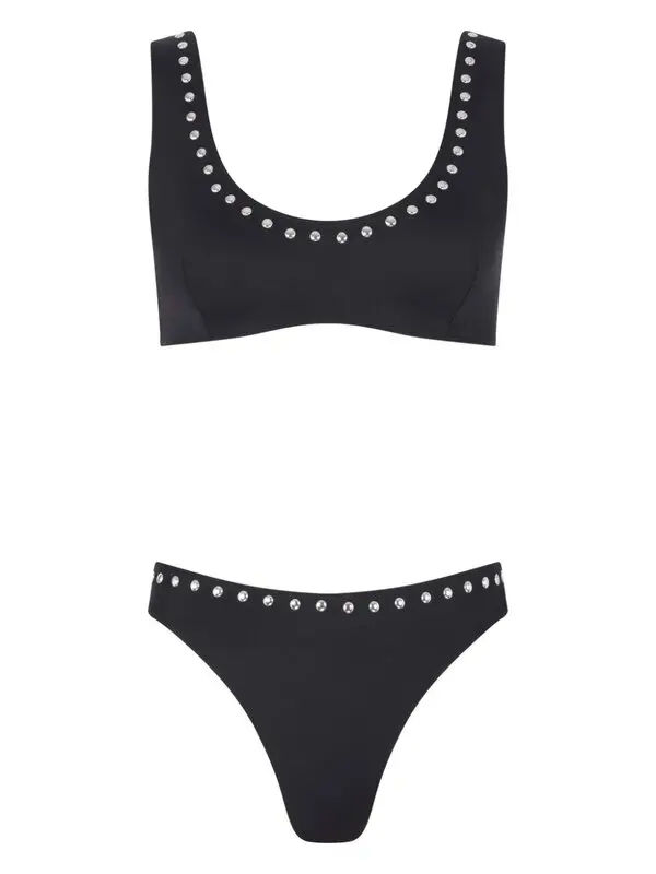 Conjunto de Bikini ecológico acolchado extraíble de 2 piezas de talla grande con cuello redondo y diamantes de imitación plateados metálicos negros para mujer