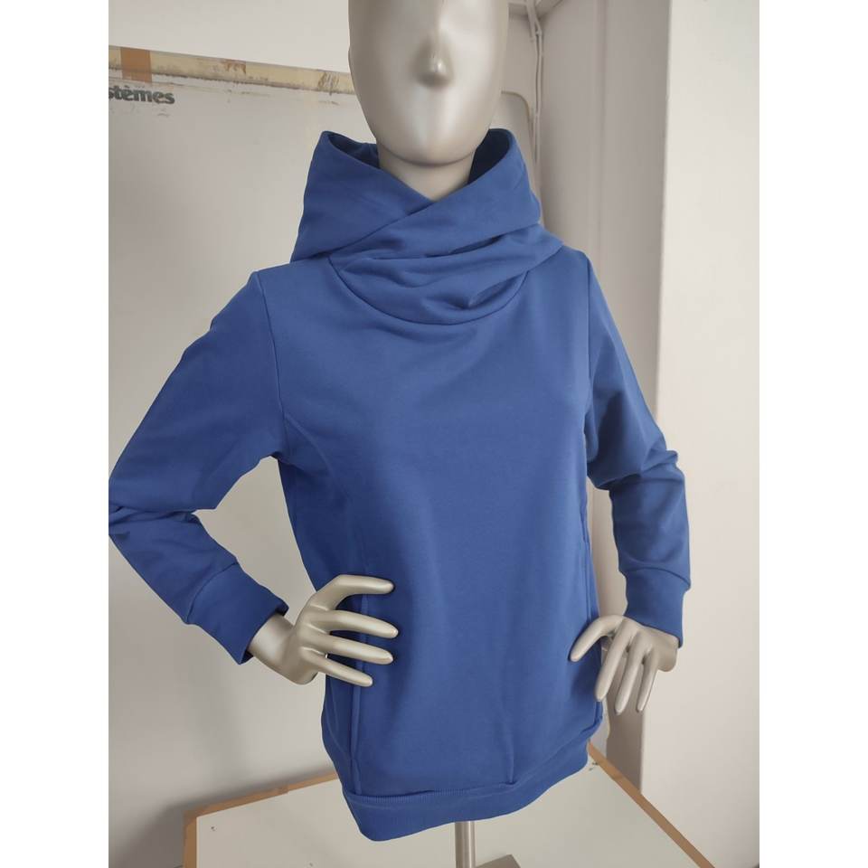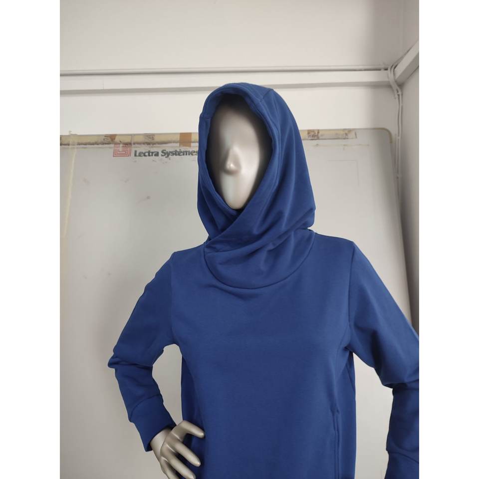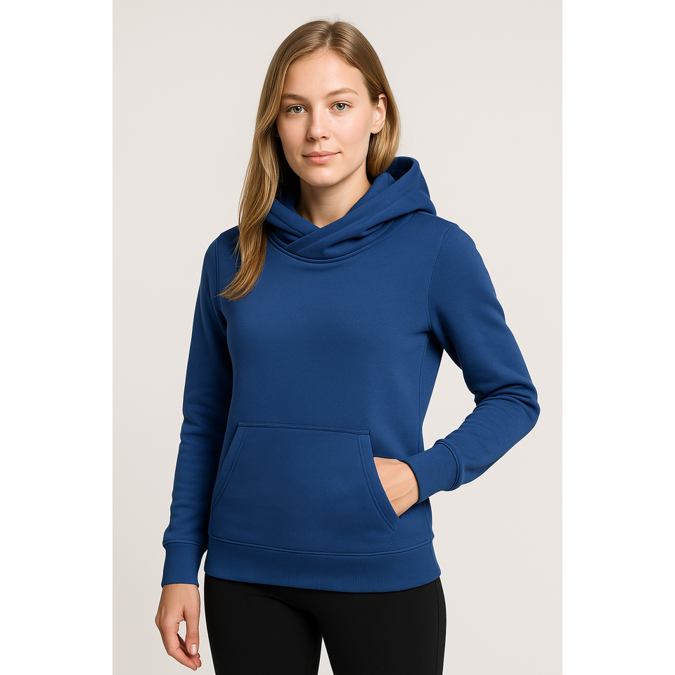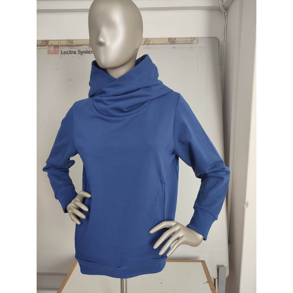 Sudadera Azul para Mujer Luxe Cuello Cowl Suave Tejido Interior Diagonal