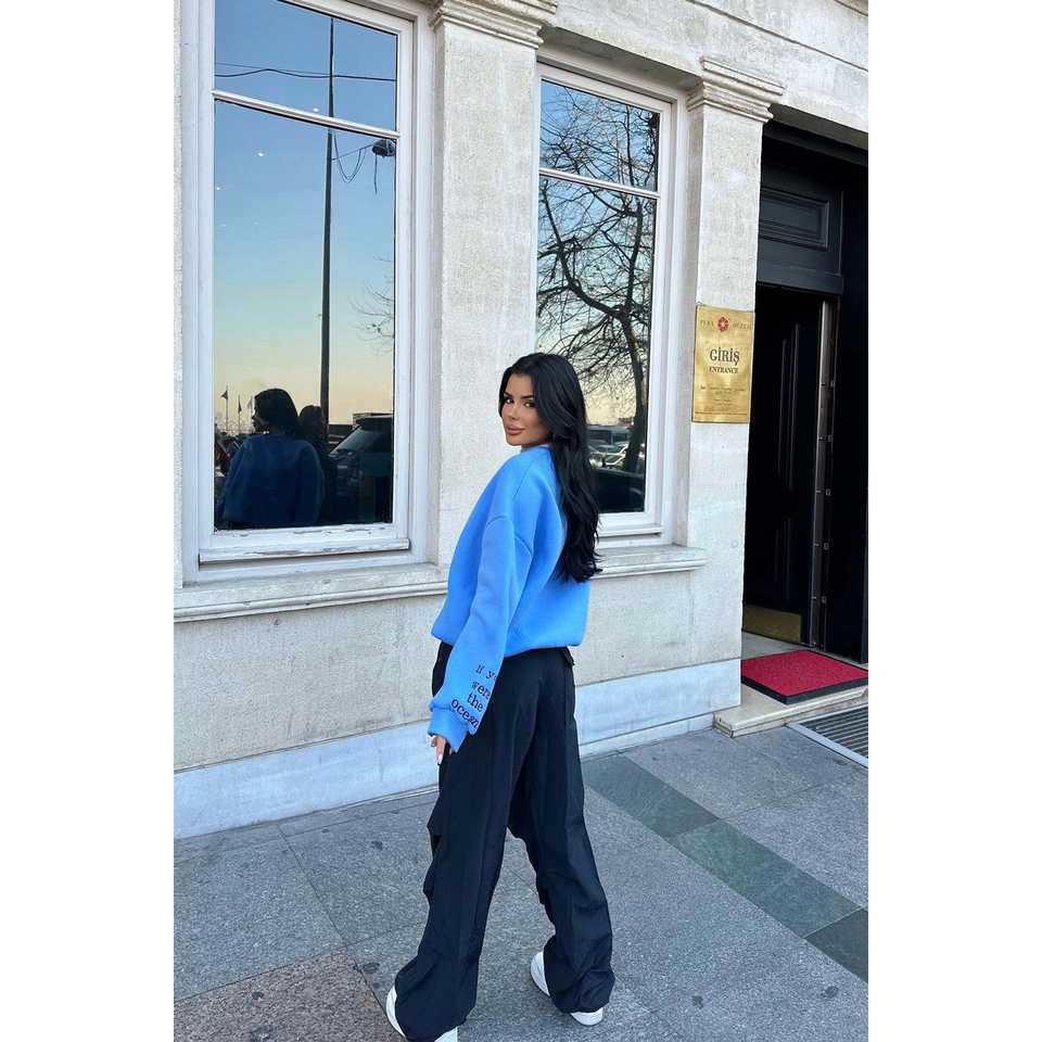 Sudadera Azul Oversize para Mujer con Detalle Bordado, Top Corto con Capucha y Cremallera, Estilo Hip Hop con Adorno de Agujeros Bonitos