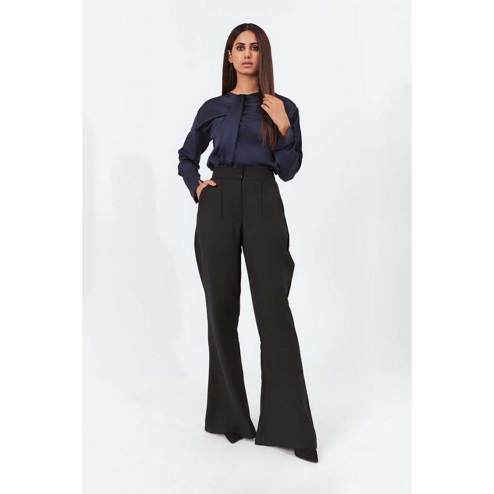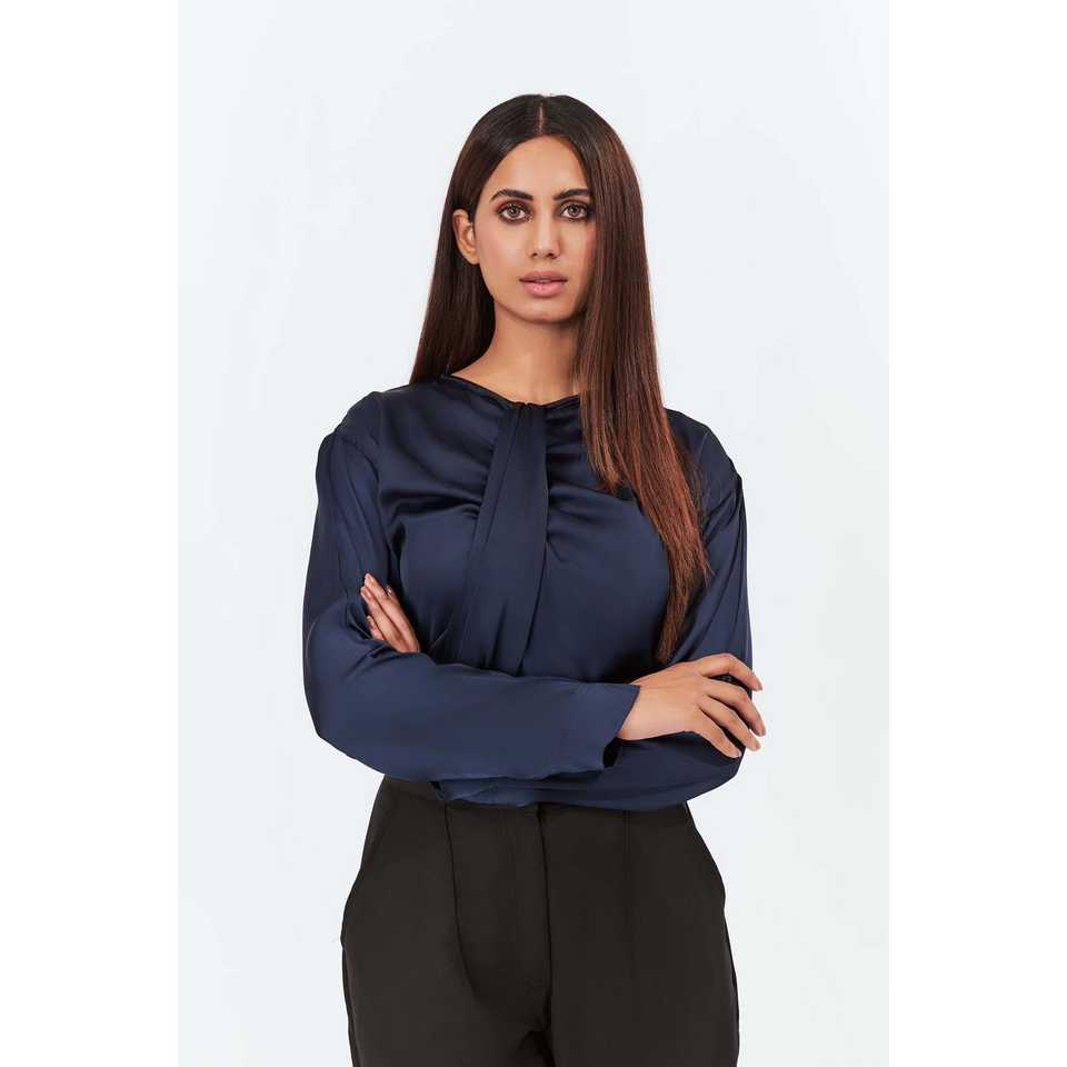 Blusa de seda azul para mujer