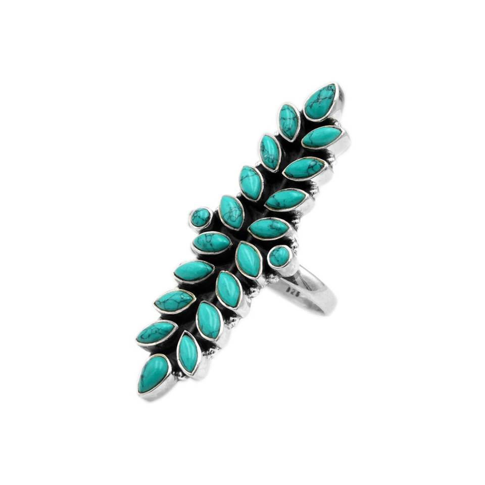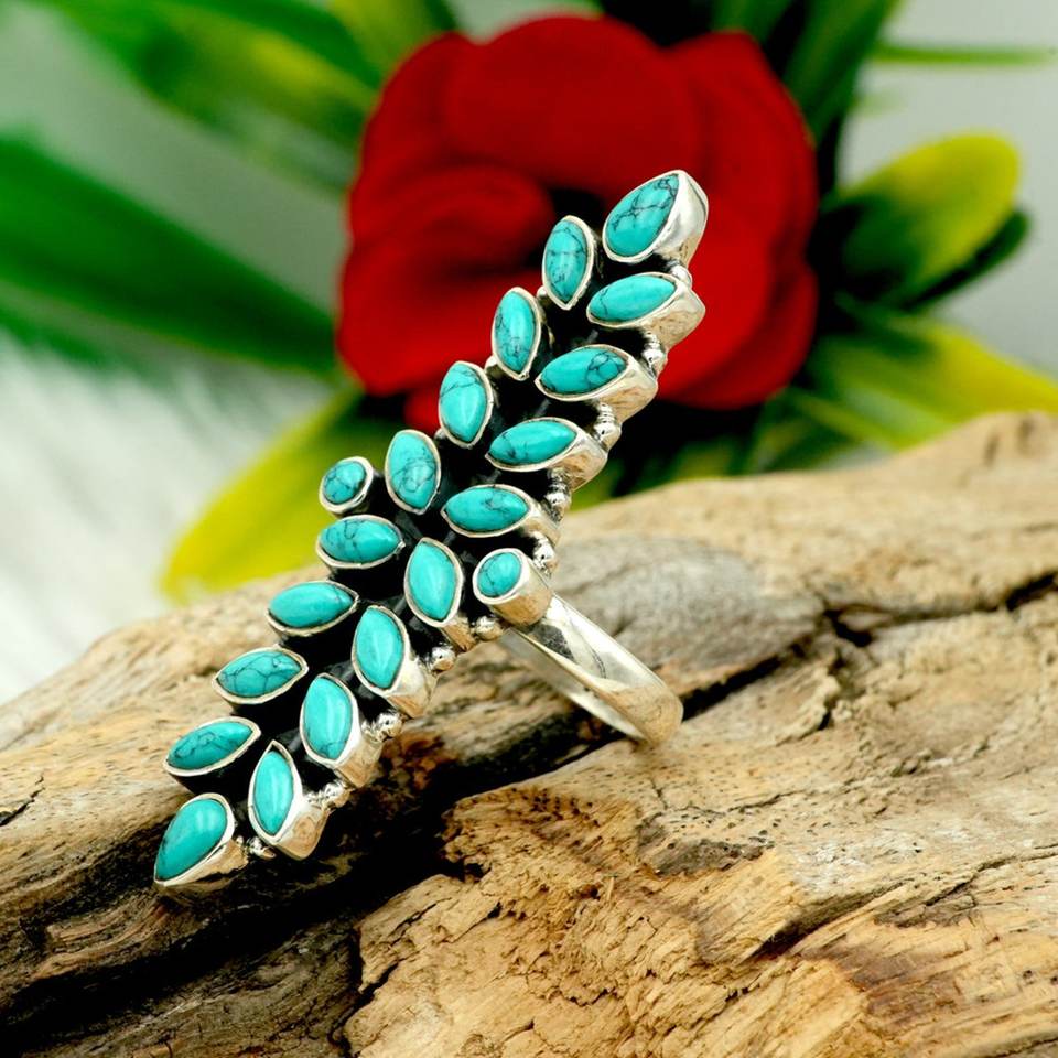 Joyería de declaración Bohemia para mujer, anillo de turquesa Natural con piedra preciosa, anillos de moda de plata de ley para mujer, anillos de moda para el R0132-GS