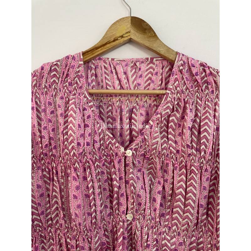 Minivestido de verano de estilo bohemio para mujer, Top con estampado de rayas de bloque de algodón 100% con cuello en V, vestido de fiesta hecho a mano