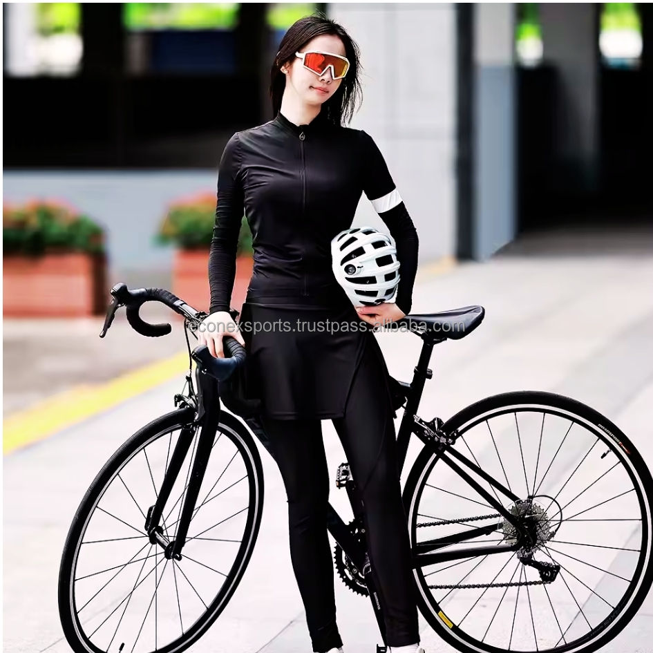 Conjunto de Jersey de ciclismo transpirable para mujer, falda larga, mallas de bicicleta con almohadillas de Gel 5D, pantalones de bicicleta de alta elasticidad