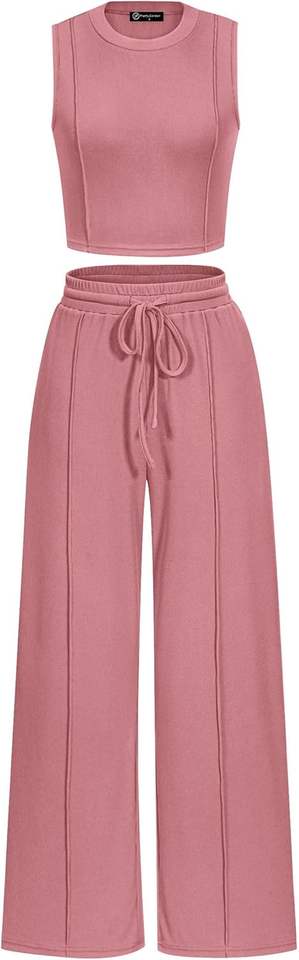 Conjunto de ropa de Salón de verano de 2 piezas con patrón sólido transpirable para mujer, camiseta sin mangas recortada y pantalones de chándal de pierna ancha, trajes informales para invierno