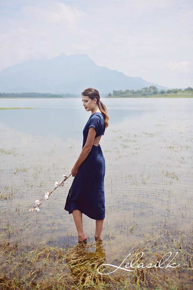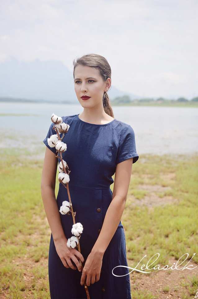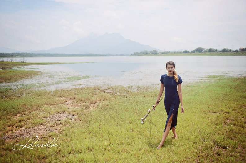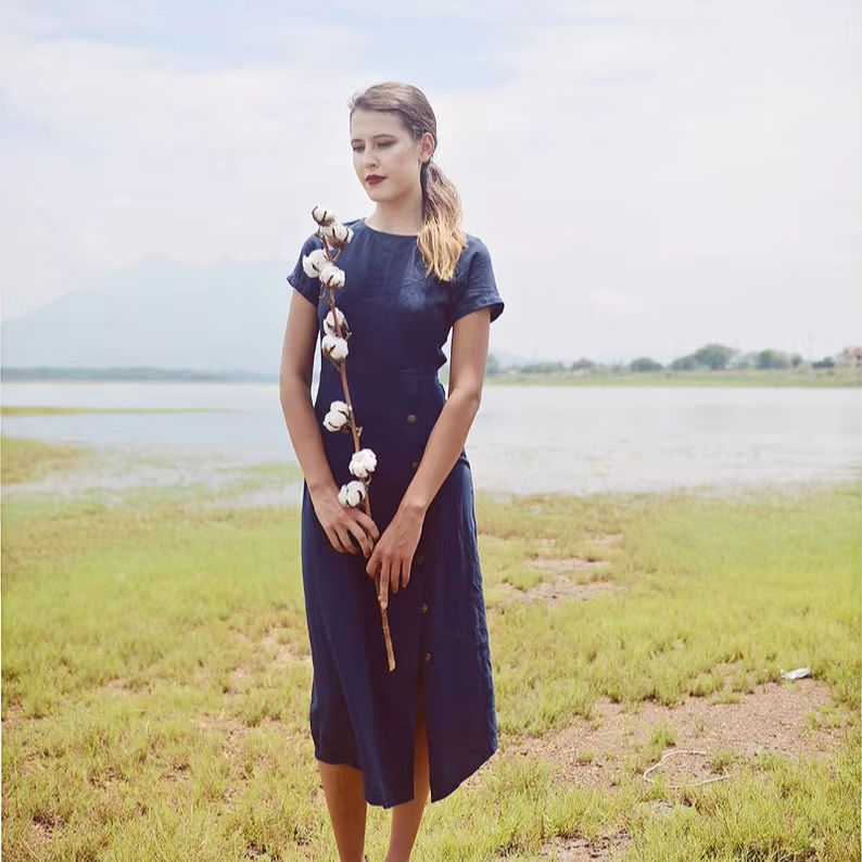 Vestido de algodón de lino con botones para mujer, tela orgánica, diseño de espalda abierta, cintura Natural lavable para trajes de verano, uso diario