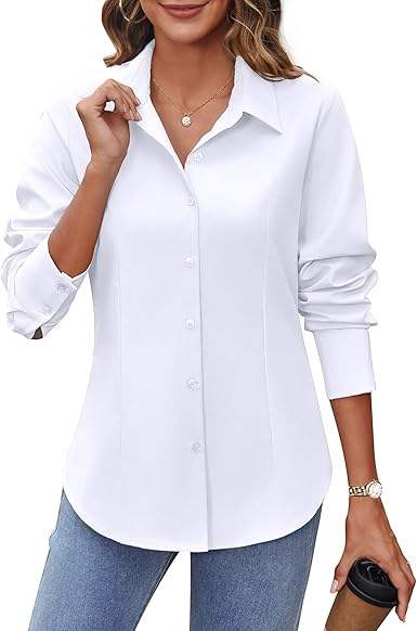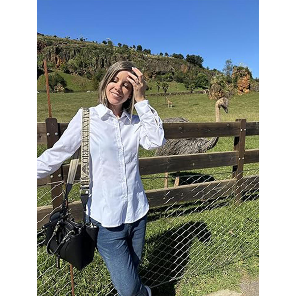 Blusas de Algodón Casuales para Mujer con Botones y Cuello, Manga Media, Corte Regular, Elegantes para Verano y Trabajo