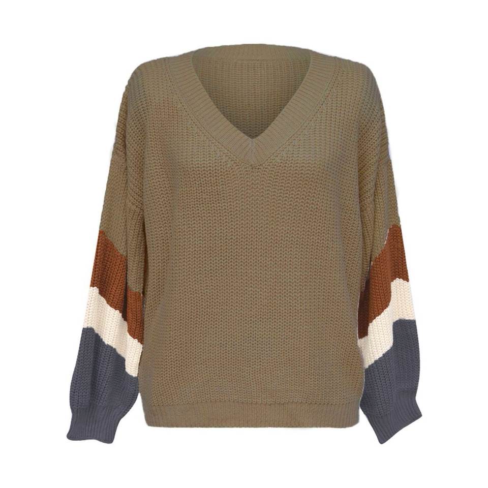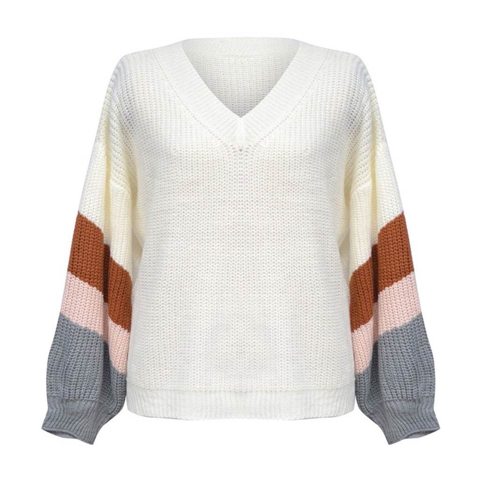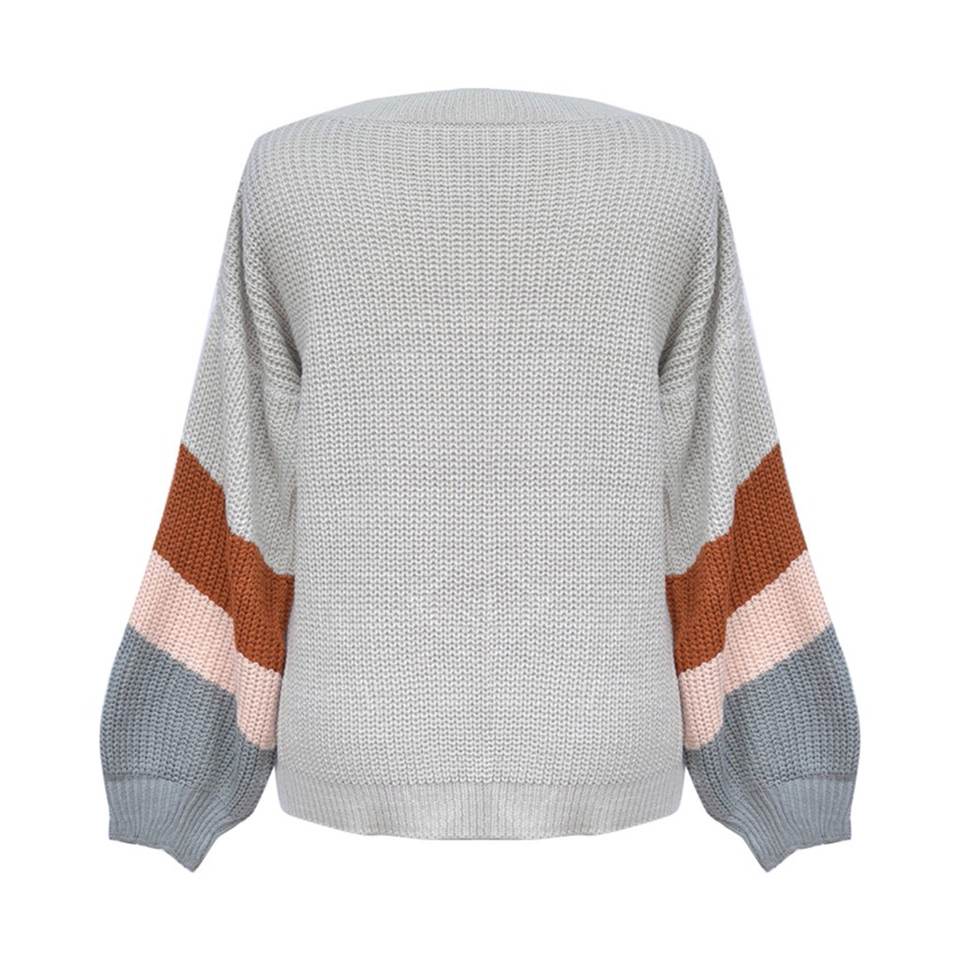 Keyword:Sweater Woman Pullover V Neck Lantern Sleeve