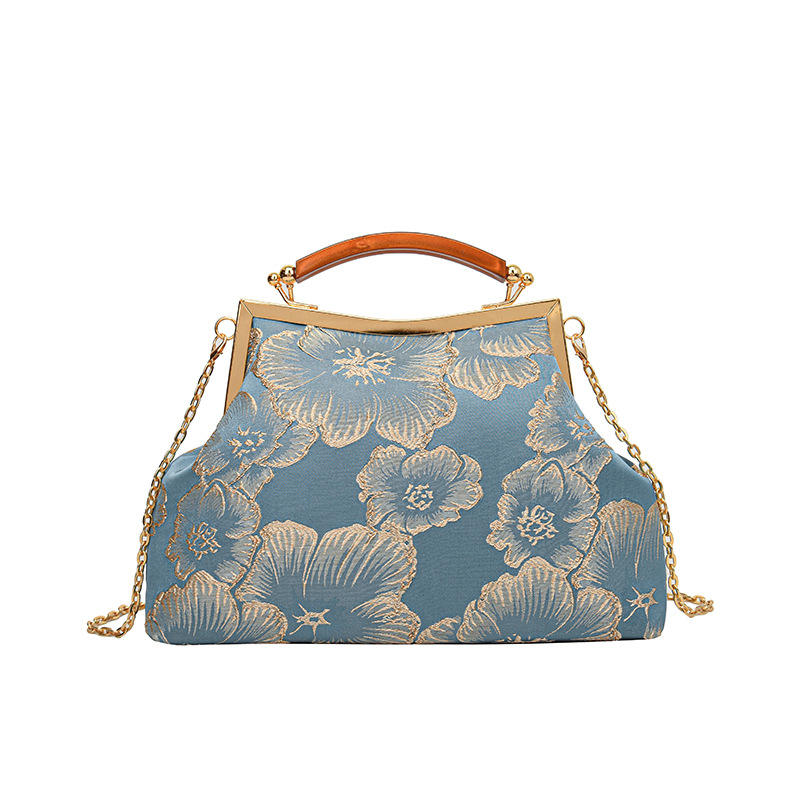 Women's Chain Bag Frame Shape Sky Blue Floral Embroidery Wedding Shoulder Crossbody Bag Fashion Trend Fall 2023