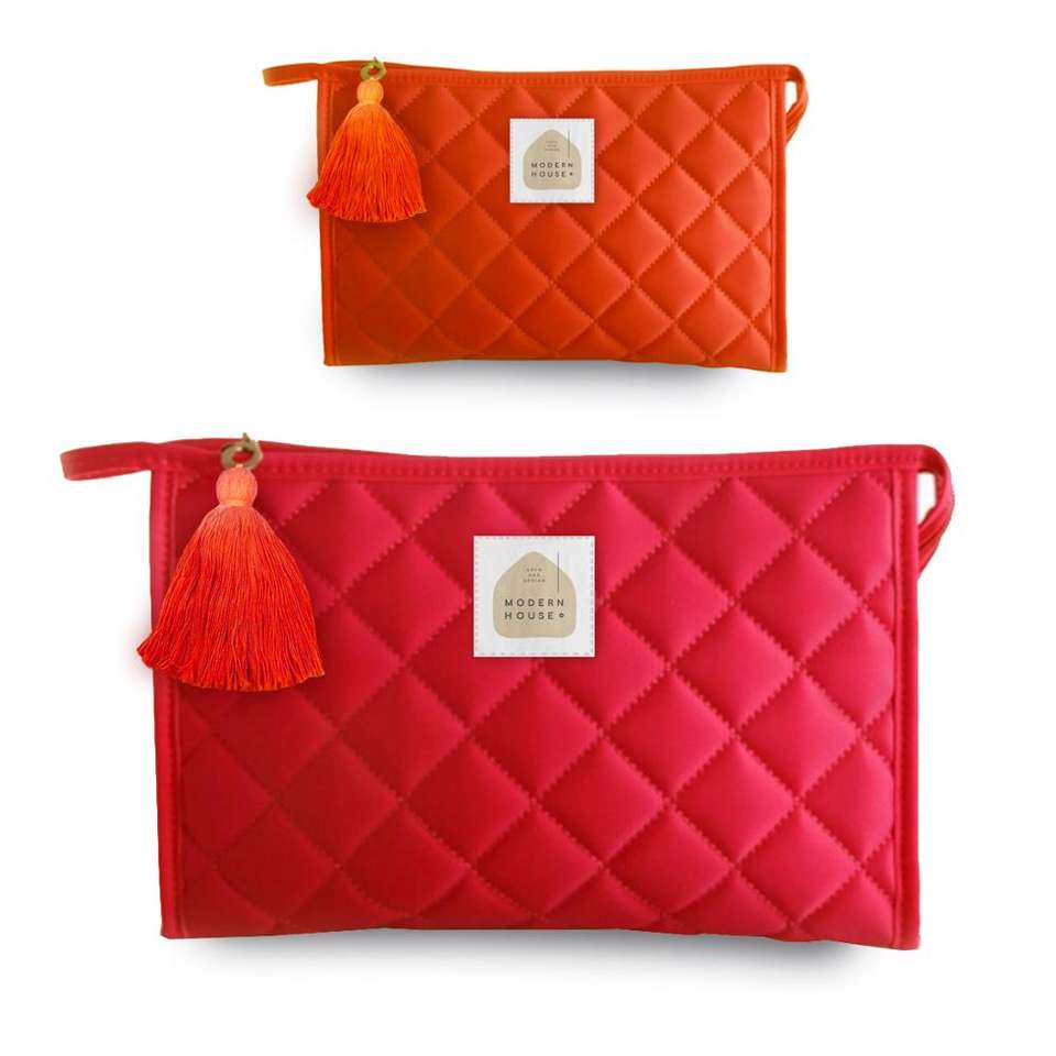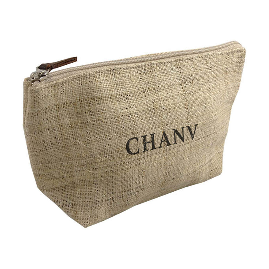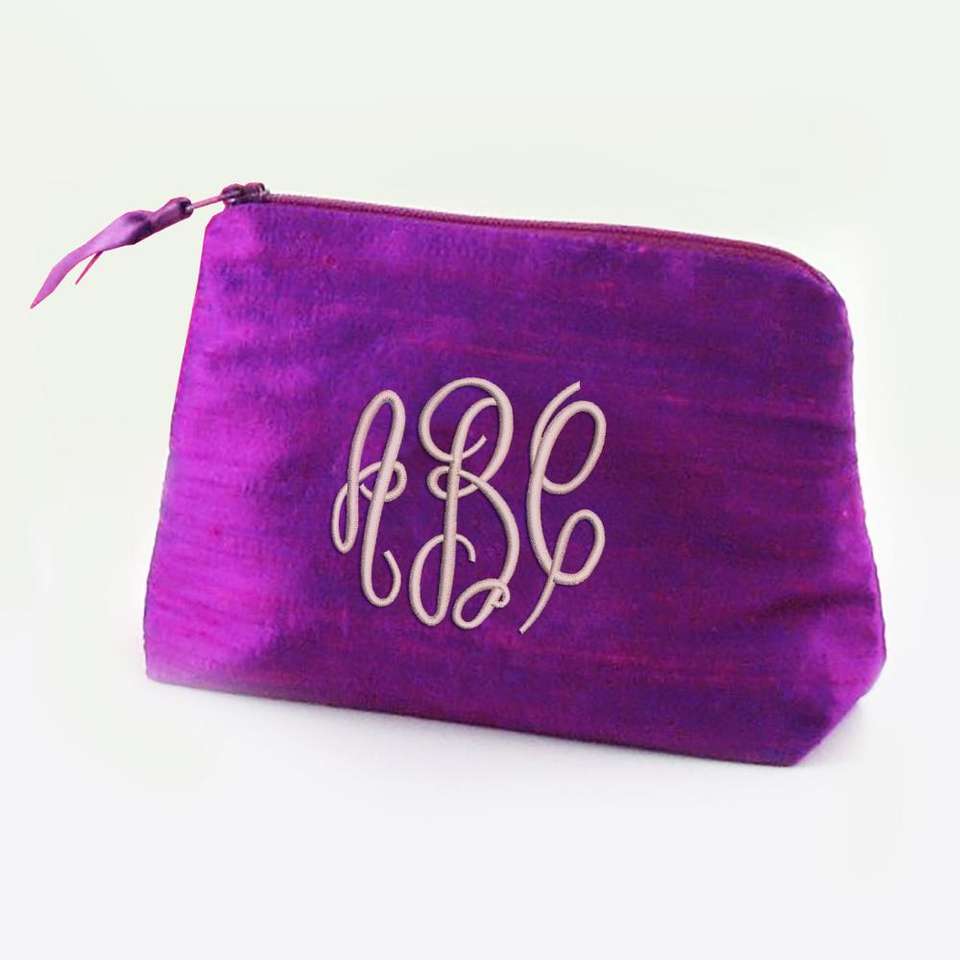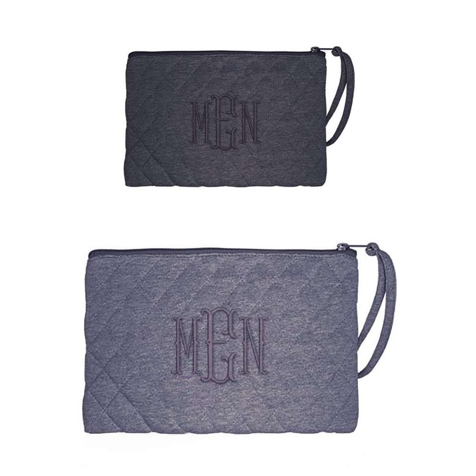 Bolsa de maquillaje de algodón acolchado Gris Carbón para mujer Cierre de cremallera bordado Monaram para cosméticos y uso diario