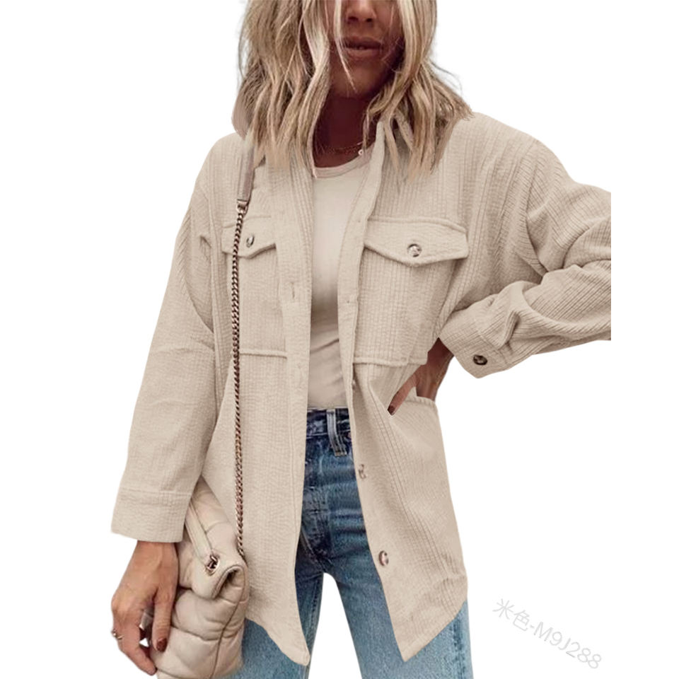 Chaqueta holgada de manga larga elegante de otoño para mujer, bolsillos sólidos, prendas de vestir de pana simples, camisas con bolsillos en el pecho, vestidos informales