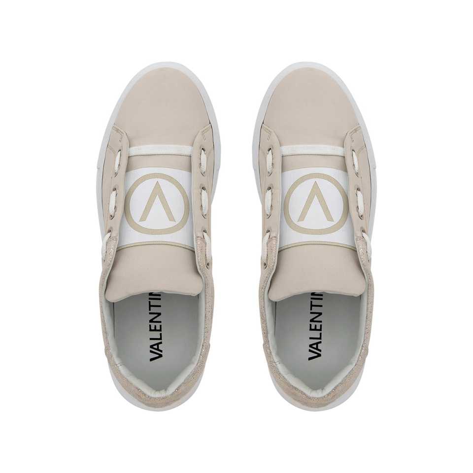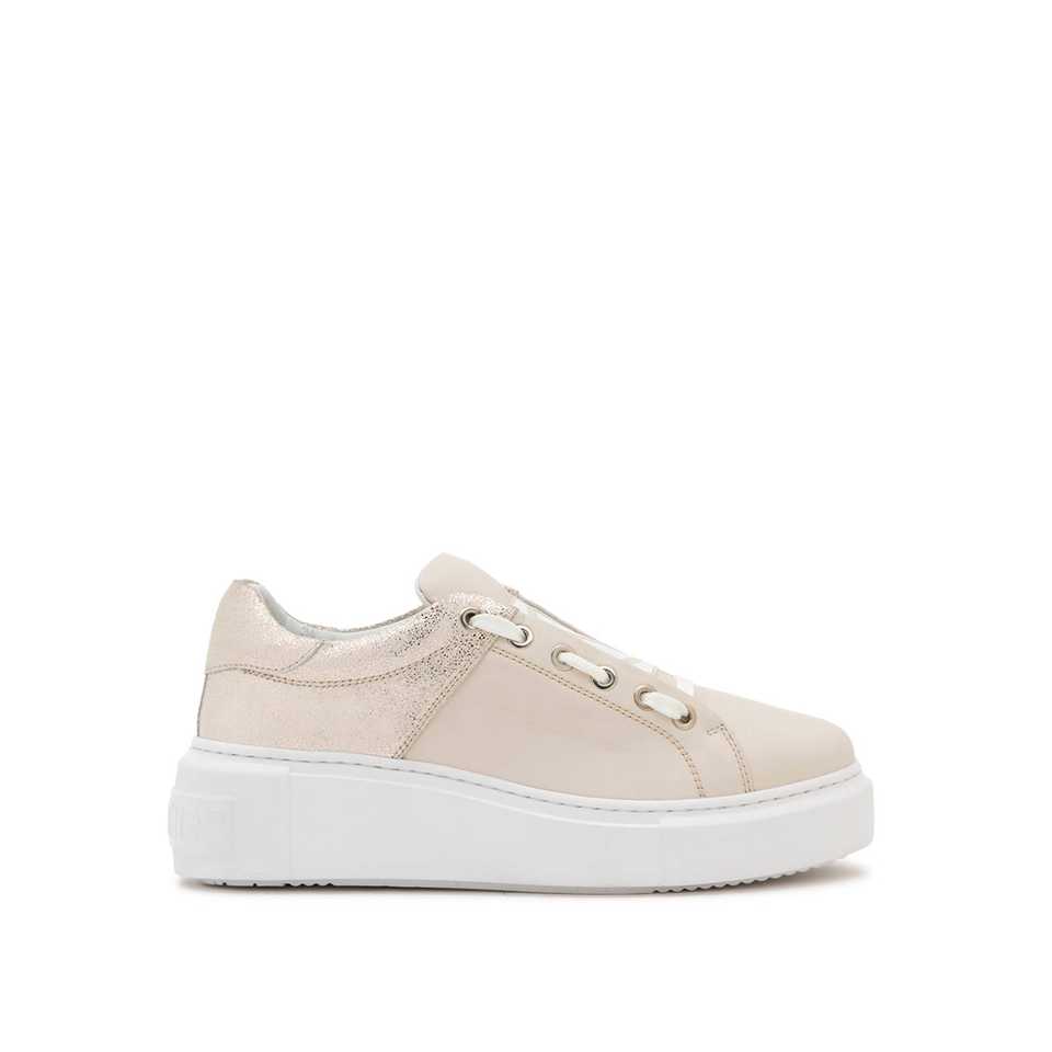 Zapatillas Deportivas Gruesas para Mujer BaragaS, Hechas en Italia, Piel de Becerro, Detalles Laminados, Lengüeta con Logotipo V, Blanco/Oro Rosa