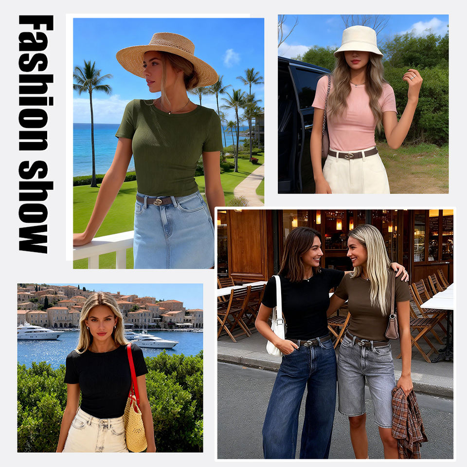 Camiseta Clásica de Cuello Redondo para Mujer, Manga Corta, Corte Ajustado, Básica, para Conjuntos Modernos