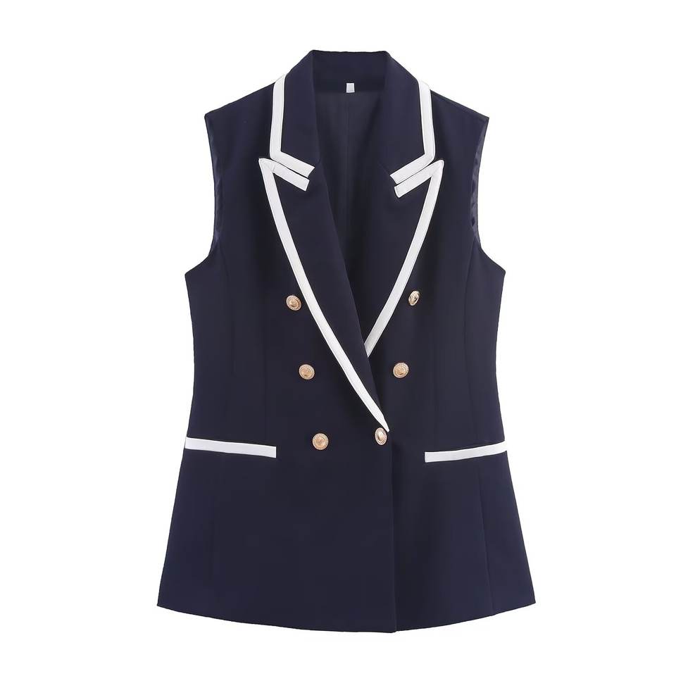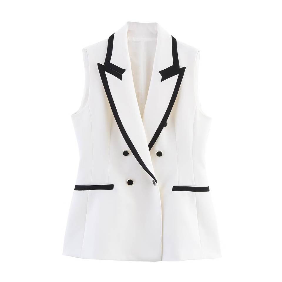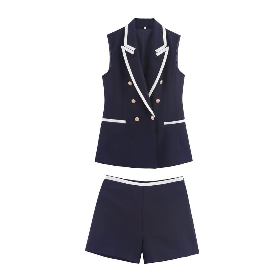Conjunto de 2 Piezas de Chaleco y Pantalones Cortos sin Mangas con Cuello y Bloques de Color para Mujer, a la Moda