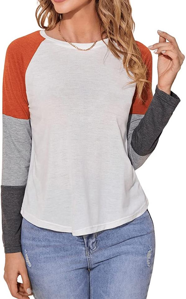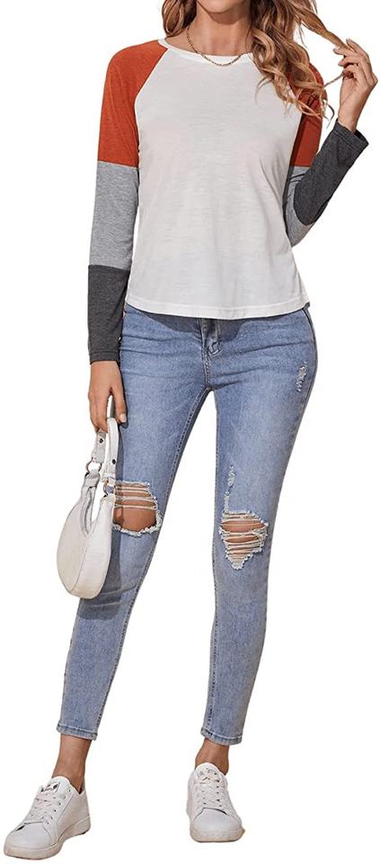 Camiseta de manga larga con cuello redondo para mujer, Camiseta holgada informal de verano