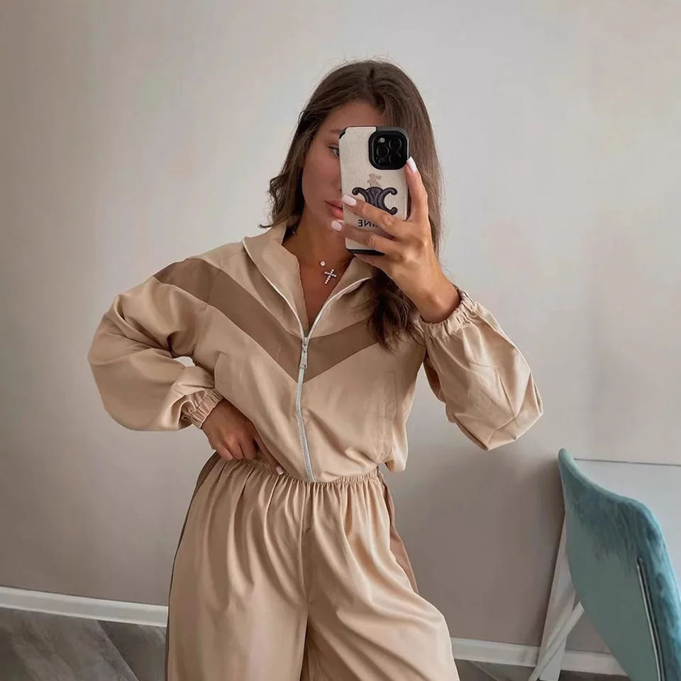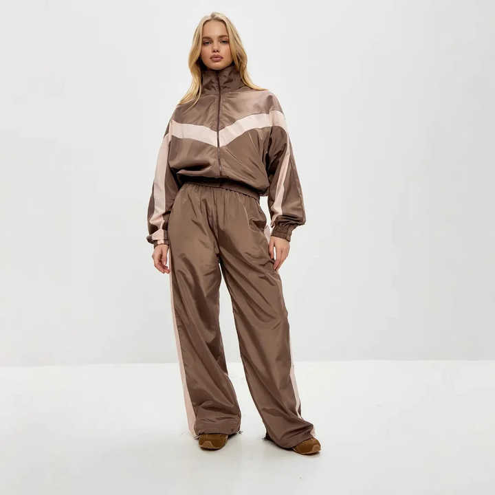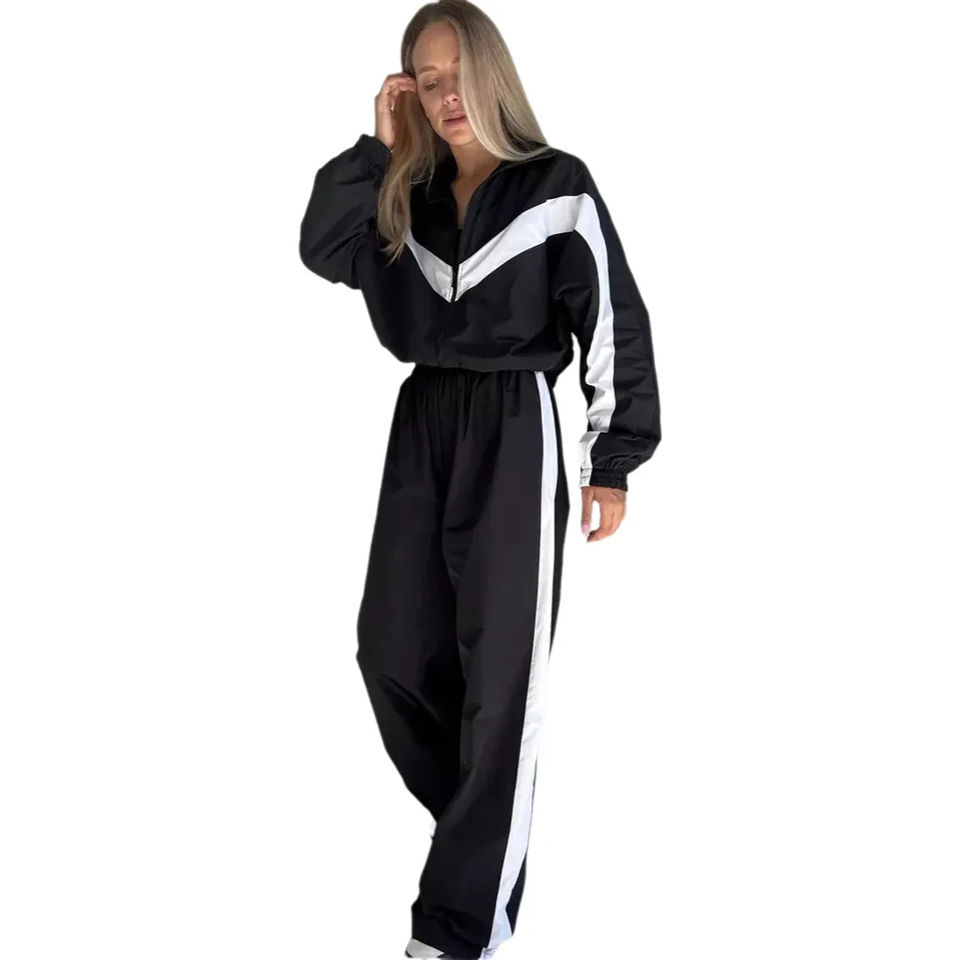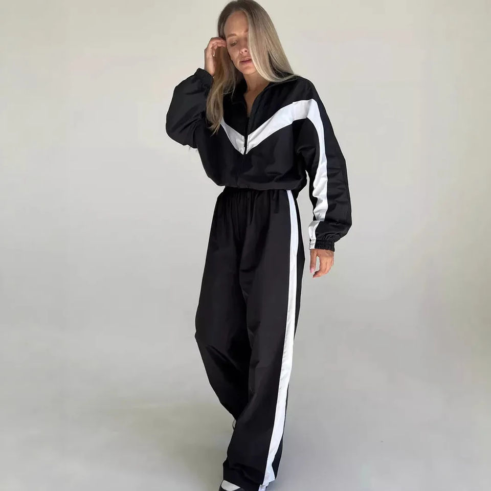 Conjunto Deportivo Color Block para Mujer – Chaqueta con Cierre y Pantalones de Cintura Alta | Conjunto Deportivo Informal de 2 Piezas