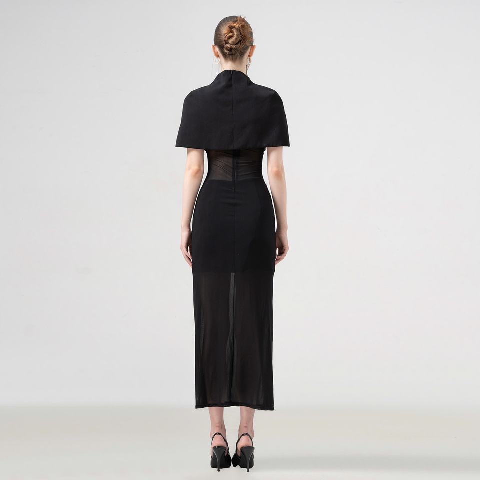 Técnicas:Sheer interior bodycon + cabo exterior estructurado.