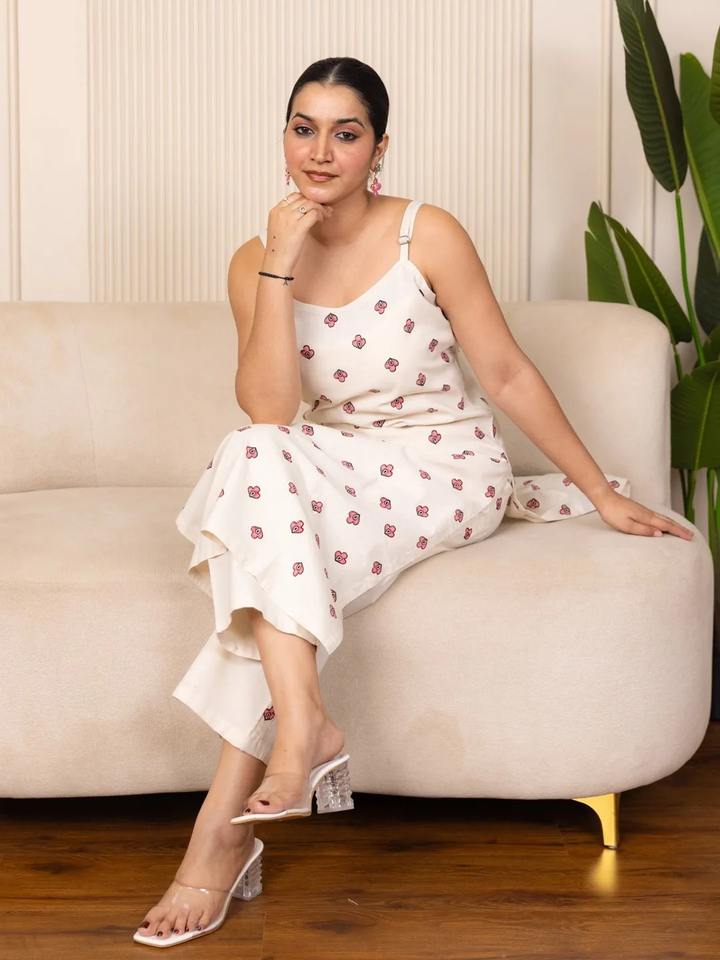 Conjunto de Kurti sin Mangas de Algodón para Mujer con Pantalones
