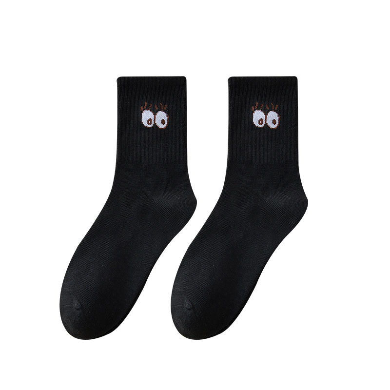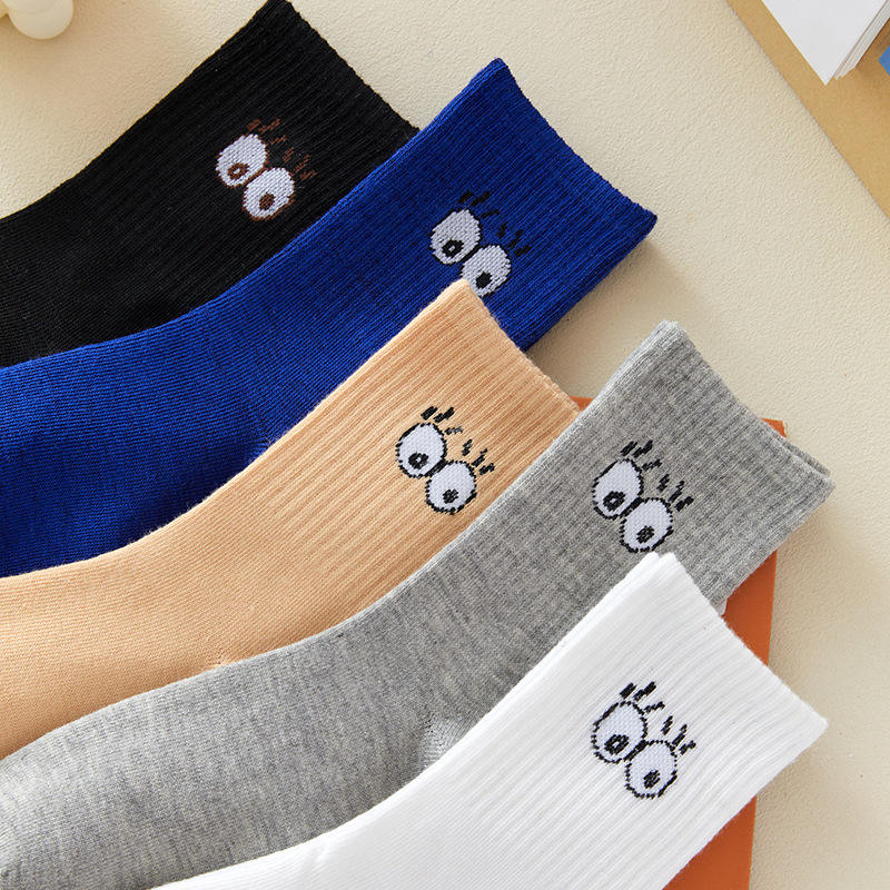 Women's Crew Socks Solid Color Cute Big Eyes Breathable Sweat-Absorbing Regular Casual Socks Autumn New Style