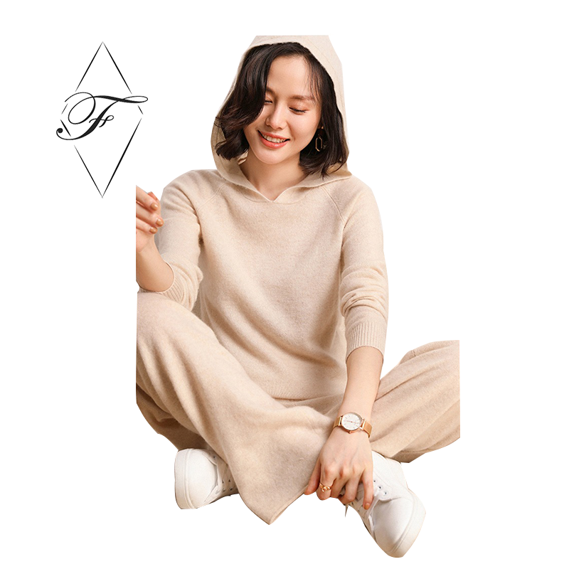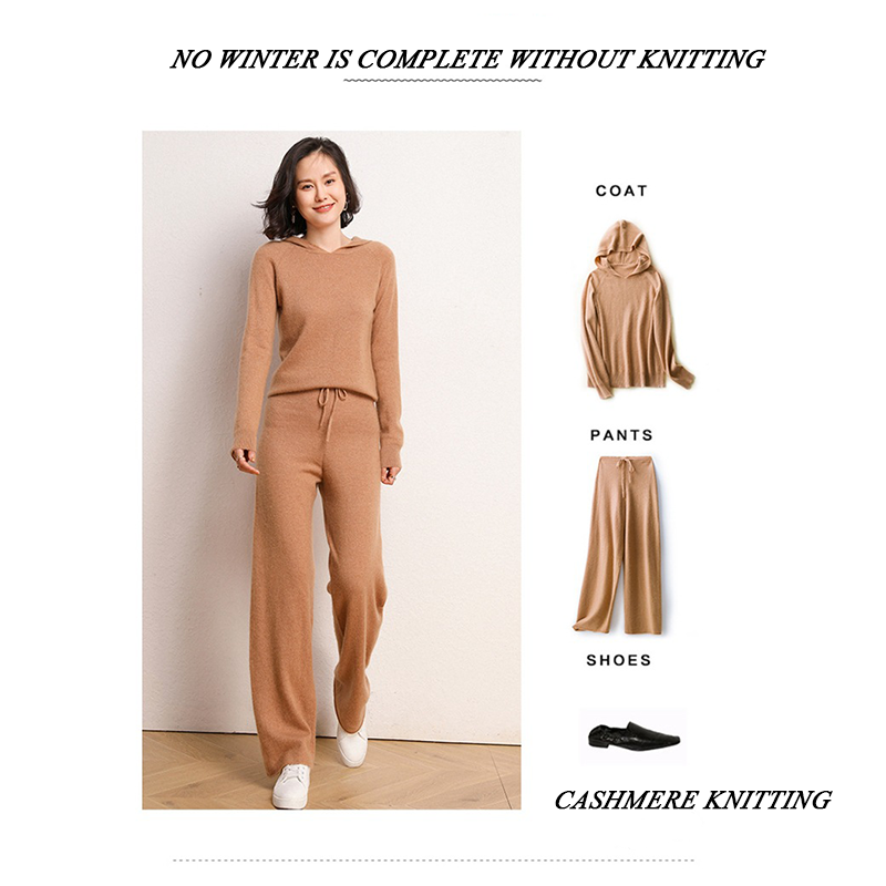 Conjuntos de suéter de punto de Cachemira 100% personalizados para mujer Estilo informal de gran tamaño de alta calidad