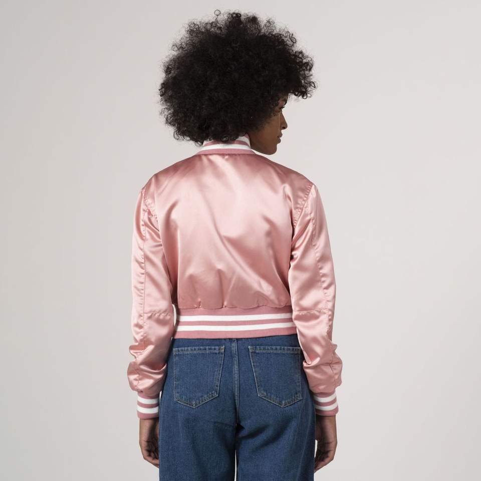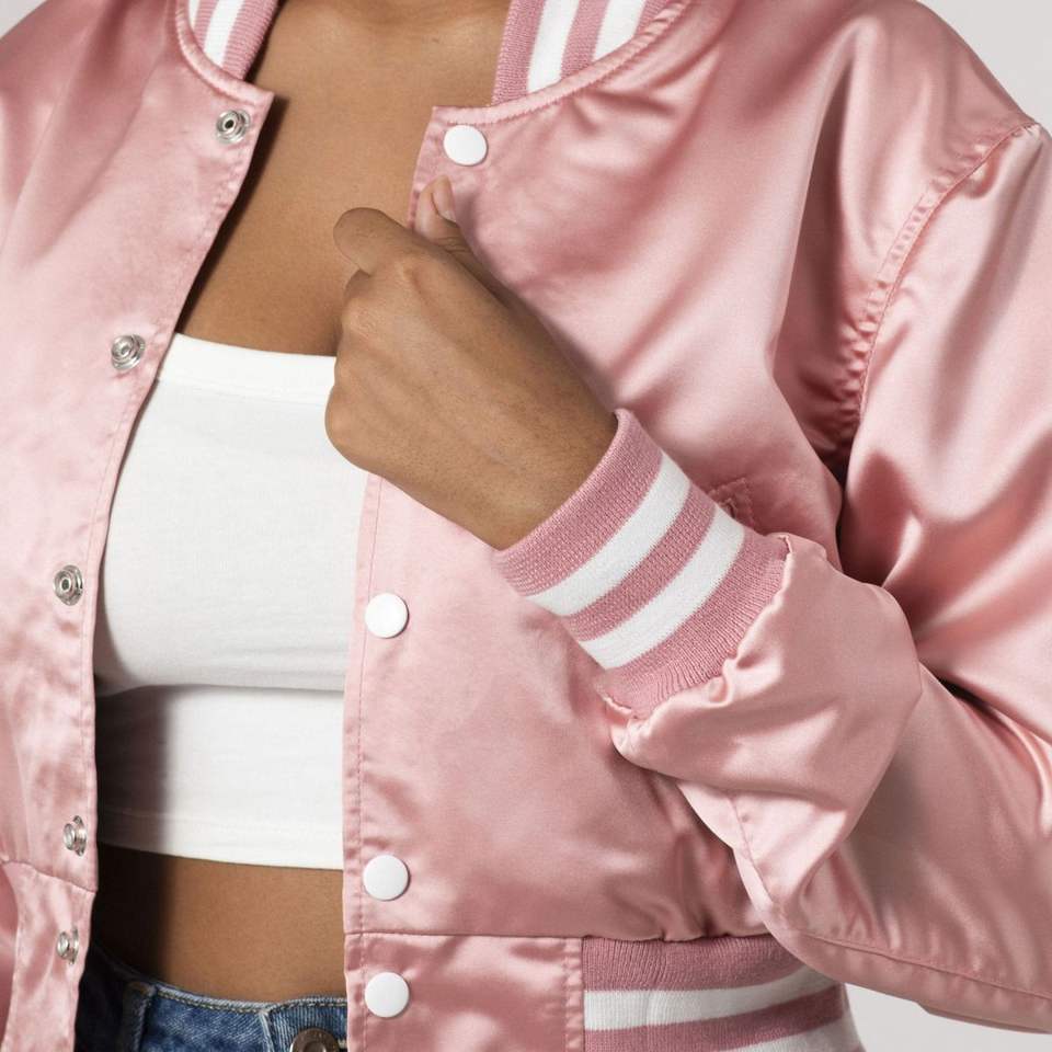 Chaqueta corta de diseño personalizado para mujer Color sólido Satén Varsity Acolchado Cierre a presión Invierno Corto Bajo MOQ Fábrica al por mayor