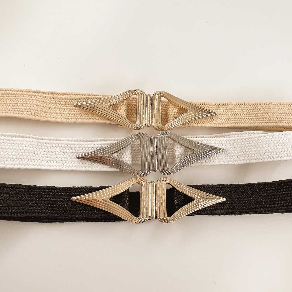 Cinturón elástico personalizado para mujer con hebilla en V doble de aleación 2,5 CM ancho 80cm longitud para vestidos abrigos Jeans