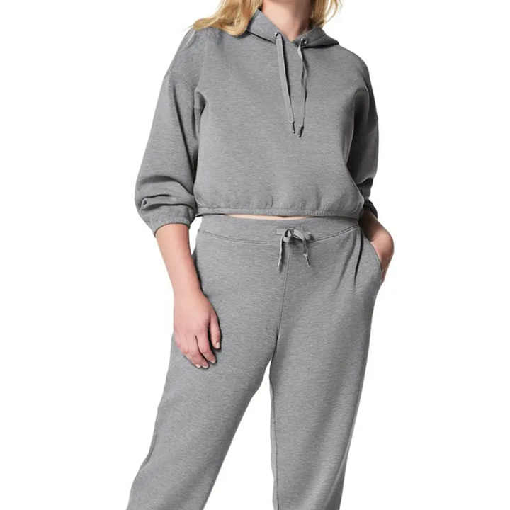 Sudadera con capucha de alta calidad personalizada para mujer, conjunto de dos piezas, entrenamiento corto de gran tamaño, cordón de manga larga de verano