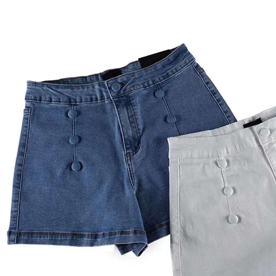 Bermudas de mezclilla azul con logotipo personalizado para mujer, conjuntos de tela vaquera elástica de cintura alta para niñas