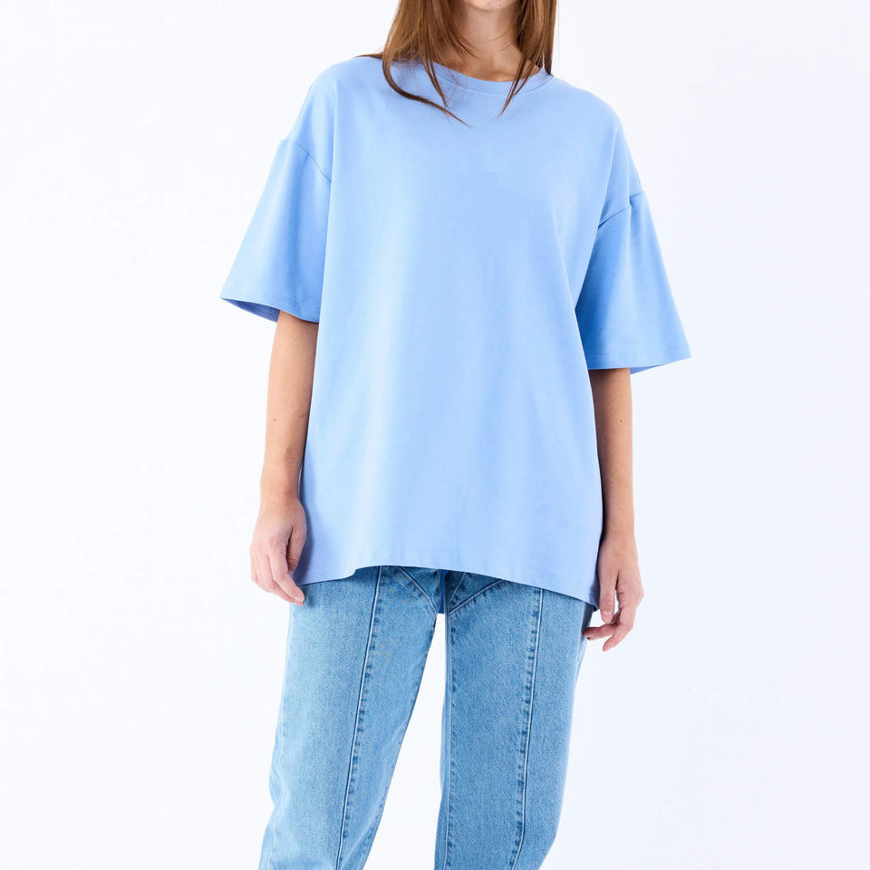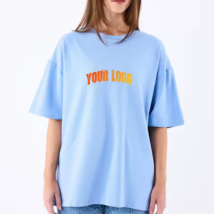 Camiseta de algodón liso de gran tamaño con logotipo personalizado para mujer, ropa de calle ecológica con hombros caídos y peso pesado para verano