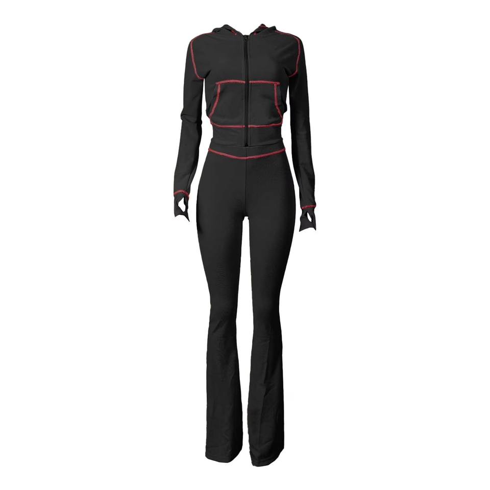 Conjunto de ropa deportiva de dos piezas con logotipo personalizado para mujer, pantalones acampanados con capucha y patrón sólido de estilo Retro Y2K, atuendo informal de Athleisure